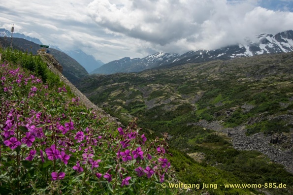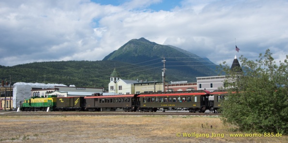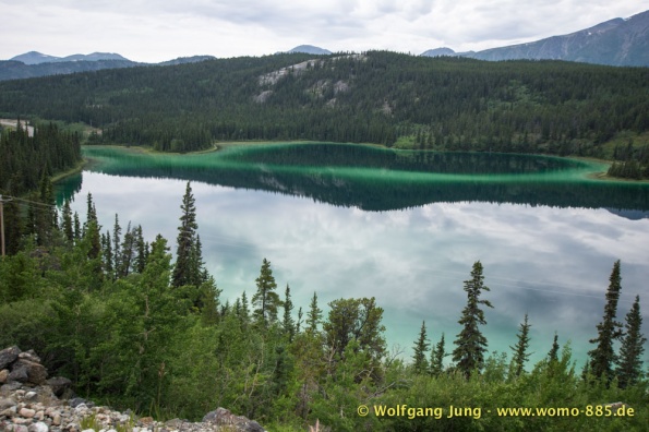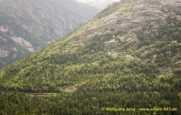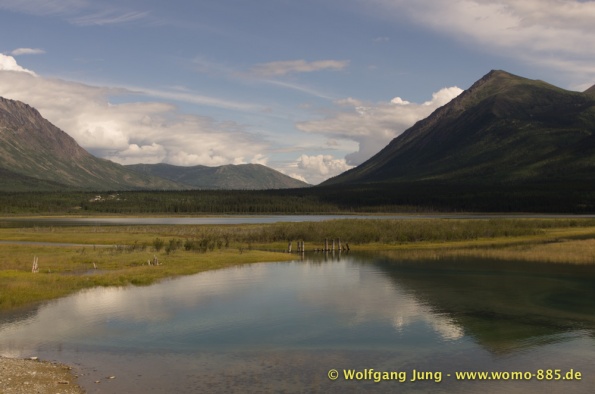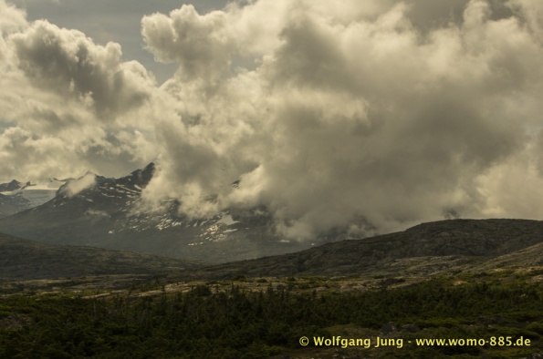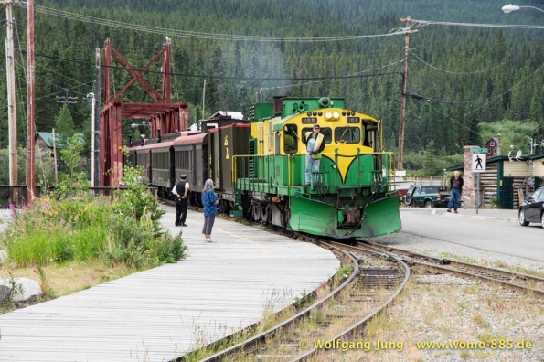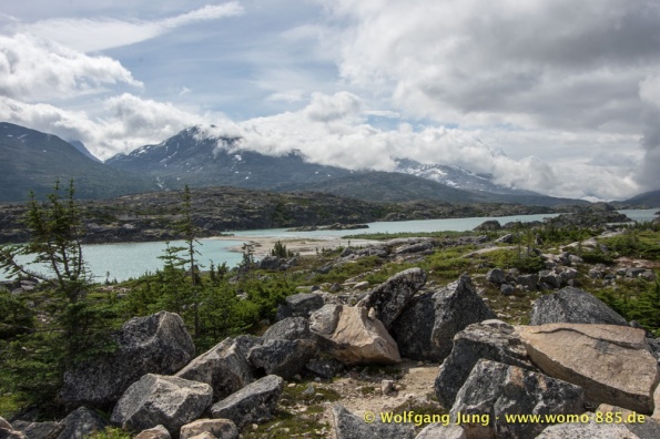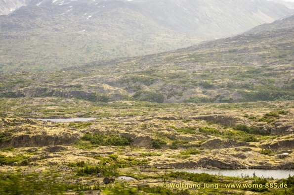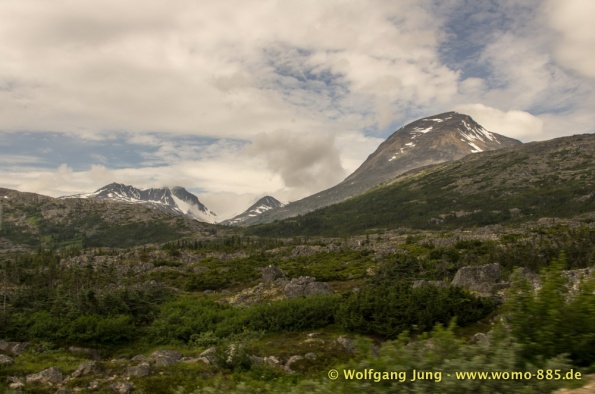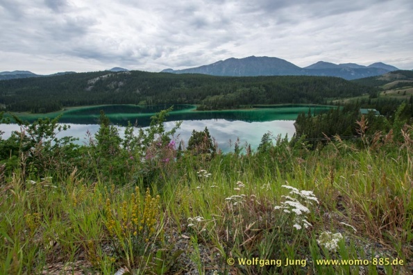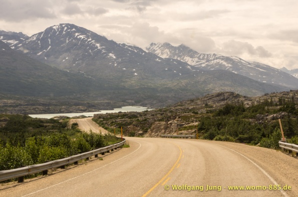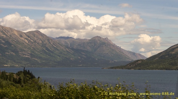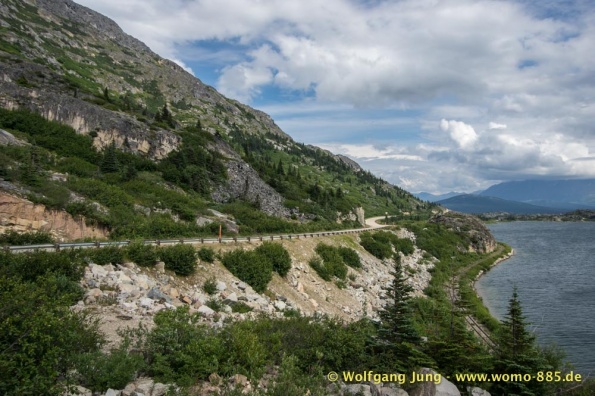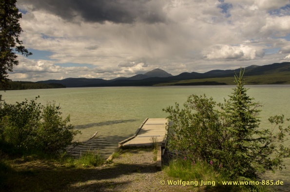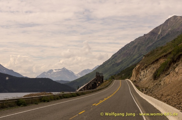 Wir fahren nach Süden den Alaska HWY, über Stewart Crossing nach Pelly Crossing, wo wir am Ufer des Pelly River übernachten. Weiter geht es nach Whitehorse, wo die Sensoren der Bremsen an der Hinterachse getauscht werden, ein Opfer des Schlammes auf dem Dempster. Frisch versorgt geht es über Carcross, den White Pass nach Skagway. Hier verabschieden wir uns nach 5 Wochen von Christiane und Jürgen. Die gemeinsame Reise hat viel Freude gemacht. Zurück, den White Pass hoch bis zum Squanga Lake, wo wir ein letztes Mal am Alaska HWY übernachten.