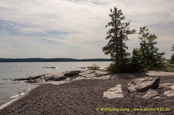 Wir verbringen bei super Wetter ein Wochenende am Manitoba Lake. Über Winnipeg und Lower Fort Gary zur Grand Beach am Winnipeg Lake. Über eine Nebenstrecke besuchen wir eine Goose Sanctuari und bleiben am West Hawk Lake, direkt an der Grenze zu Ontario. Die nächsten tage geht es über den HWY 17 den Superior Lake entlang. Das ist der zweitgrößte See der Erde und mit über 80.000 km2 das größte Süßwasser Reservoir. Wir fahren im ersten Teil durch eine hügelige Landschaft, die stark an Finnland erinnert und in die auch viele Finnen ausgewandert sind. Dann kommt Vulkangestein zum Vorschein, oft in senkrechten Säulen, die im Licht super ausschauen. Wir sind jetzt in Sault Sie. Marie , wo Lake Superior in den Lake Huron fließt. Die großen Seen werden uns noch weiter begleiten.