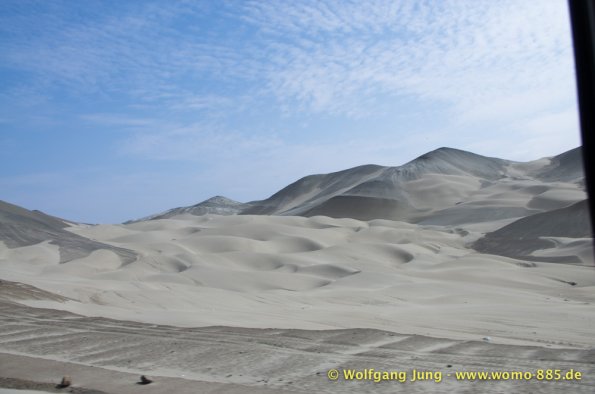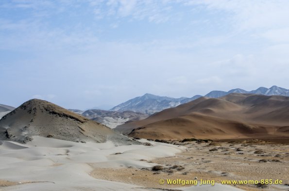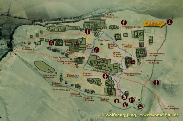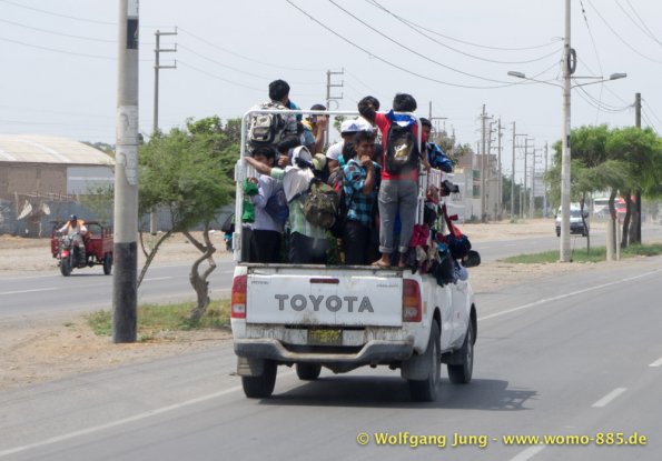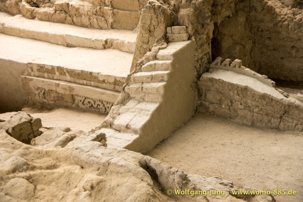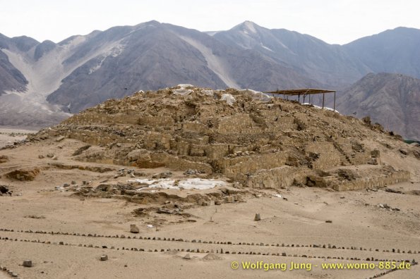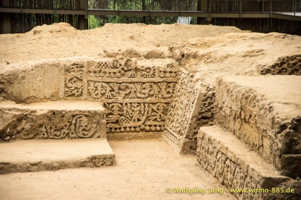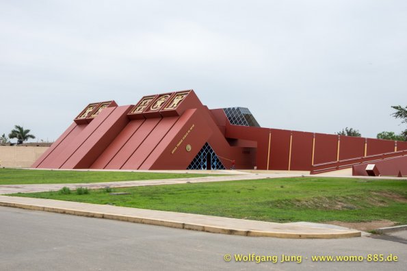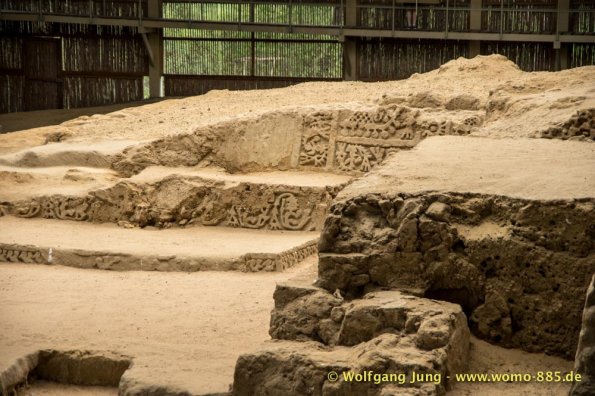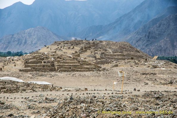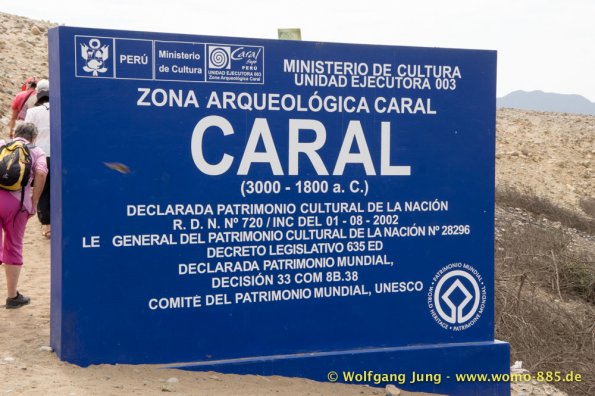 Aus Lima heraus Richtung Norden brauchten wir so gut 2 Stunden über die Stadtautobahn um dann in ein scheinbar anderes Land einzutauchen. Der eigentliche Schock war der unvorstellbare Schmutz, kilometerlang Müll am Wegesrand. Das schier Unglaubliche waren die, zumindest uns bis dahin, unbekannten Schätze der Archäologie die über 5.000 Jahre zurückreichen. Diese sind touristisch kaum erschlossen, aber sehr interessant. Erste Station war Caral, erst 1994 entdeckt, aber eine Sensation. Dieses Zentrum von ca. 23 Siedlungen war ein Handelszentrum zwischen Pazifik und dem Amazonasbecken 3.000 v.Chr. und hatte keinerlei Verteidigungsanlagen oder Soldaten etc.Dies widerlegte mit einem Schlag die Hypothese, dass der Krieg / das Militär Ursprüngliche Kraft der Zivilisierung gewesen seien. Da die Bauten aus ungebrannten Lehmziegeln und/ oder Lehmmauerwerk errichtete wurden sind sie in witterungsbedingt in keinem guten Zustand. Der Herrscher von Sippen hat in Chicvlayo ein Museum, in dem keine Fotos erlaubt sind. 1987 gefunden und mit Hilfe der Universität Mainz restauriert findet sich vielleicht was im Internet. Die handwerkliche Schmuckverarbeitung 150 n.Chr. versetzt heute noch Experten ins Staunen (die konnten löten, schweißen, etc.) Für Armbänder wurden aus Amethysten kleine Scheiben 2mm Durchmesser mit Loch hergestellt (keine Ahnung wie). Die Pyramiden von Tucumbe waren das Zentrum der Lambayeque, der Oberschicht aus Japan und Ecuador stammt. Sie waren großartige Handwerker und haben 85% des präkolumbianischen Goldes gefunden und verarbeitet. Nachdem der Oberschicht ein 50 Jahre wiederkehrenden El Nino zur Last gelegt wurde hat man diese eliminiert und Ohne "Führung" bis zum eintreffen der Inkas gut gelebt.