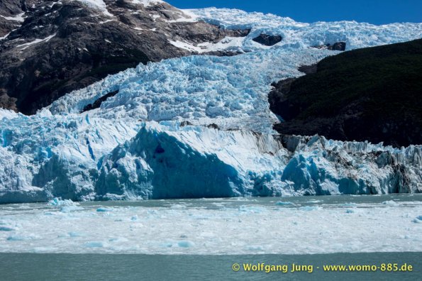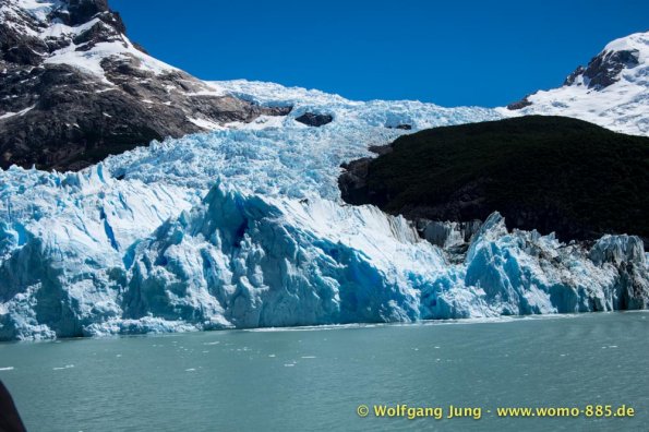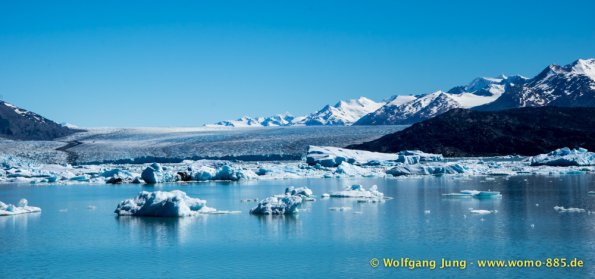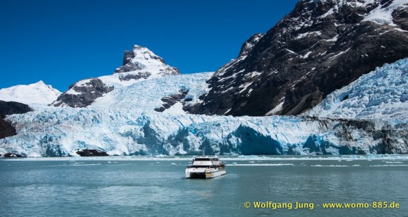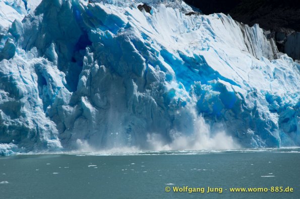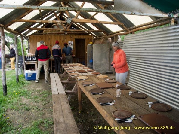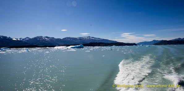 Auf der Estancia Lebrun erhielten wir von Besitzer eine ausführliche Führung mit guten Informationen. Der sinkende Ölpreis führt zu sinkenden Wollpreisen, da diese an den Kunstfasermarkt gekoppelt sind. Ein Schaf braucht heute doppelt soviel Weidefläche wie vor 15 Jahren, etc. Dann fahren wir zu den Gletschern -Perito Moreno- der angeblich einzige Gletscher ausserhalb der Polarregion der nicht zurück geht. Uppsala Gletscher mit 58 km Länge einer Größten und dem Spegazzini mit einer Abbruchkantenhöhe zwischen 85 - 135m ein toller Anblick