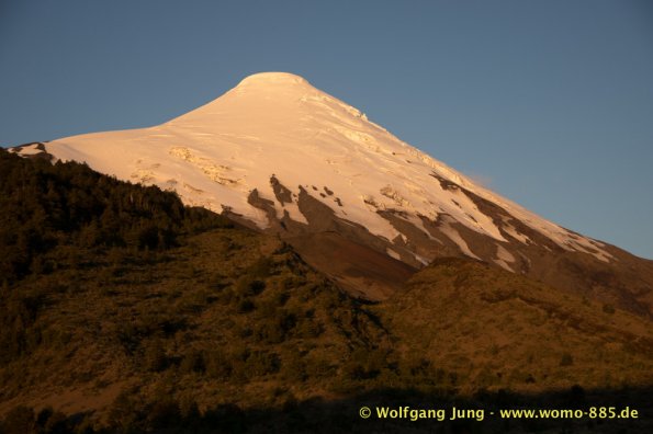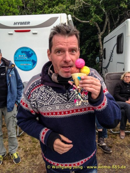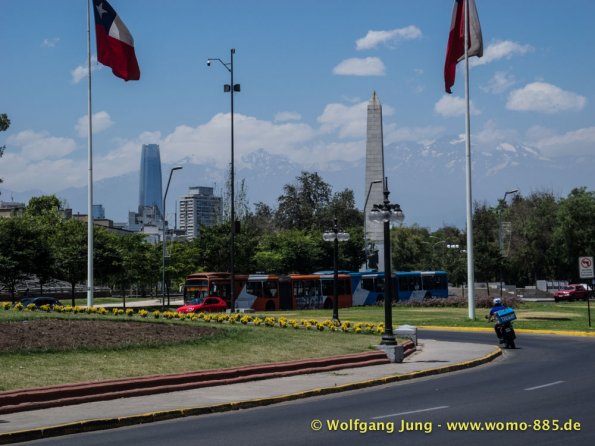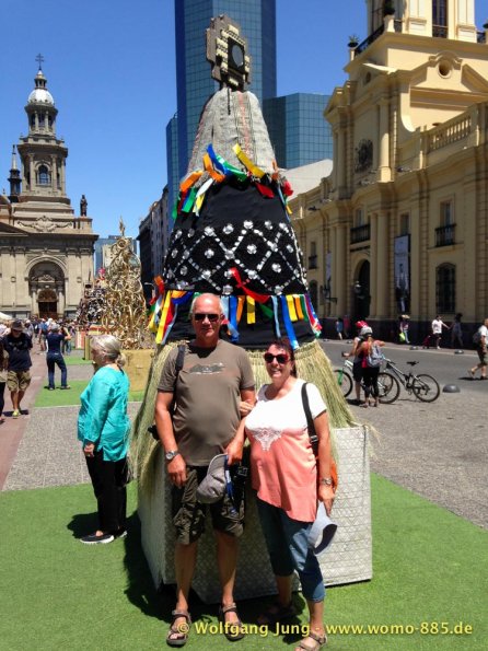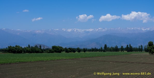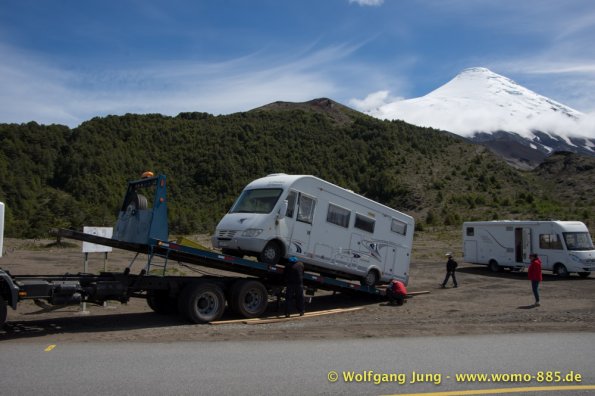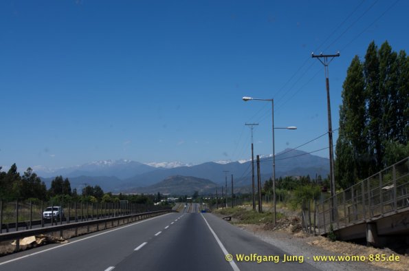 Wir haben die erste Regennacht und den ersten Regentag auf der Fahrt nach Chile. Vor Osorno besuchen wir das erste Chilenische Automuseum mit 146 Oldies, davon ca. 70 Studebaker, Armin, einem deutschen Braumeister mit eigener Brauerei, versorgt uns in seinem Restaurant bestens und ist auch sonst sehr behilflich. In Osorno kommt es dann etwas "dick". Eines der Wohnmobile wird an einem Supermarkt aufgebrochen, Computer etc. sind weg, Ein zwotes hat am Vulkan Osorno einen Kabelbrand.. Mit sehr viel Einsatz organisieren Uwe und Armin das Abschleppfahrzeug und eine Werkstatt. In Pucon wollen wir zu einem Vulkan fliegen, aber Wolken verhindern den gebuchten Flug. Die Fahrt nach Norden führt in fruchtbares Land, der Regen der Anden bewässert den fruchtbaren Boden, Holzwirtschaft, Wein und Obstanbau beherrschen das Bild. Santiago de Chile ist die Hauptstadt Chiles, hier leben mit 8,5 Mio. die Hälfte aller Chilenen. Damit ist unsere Reise durch den europäisch geprägten Teil Südamerikas abgeschlossen, nun kommen die Anden.