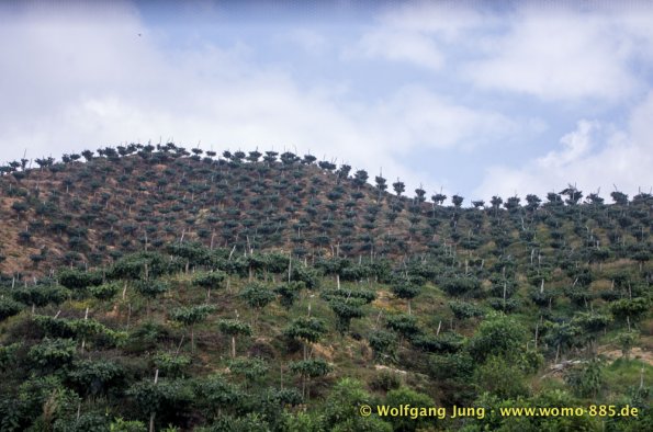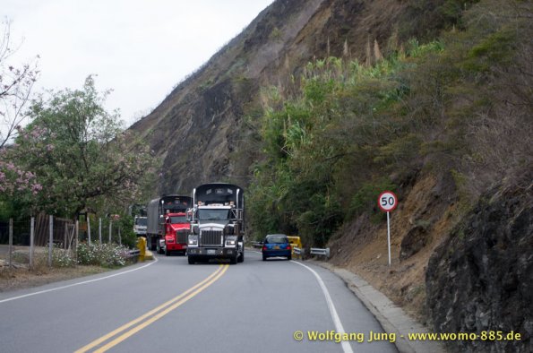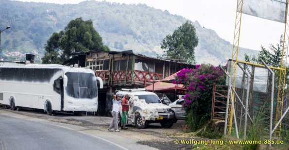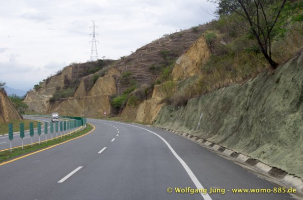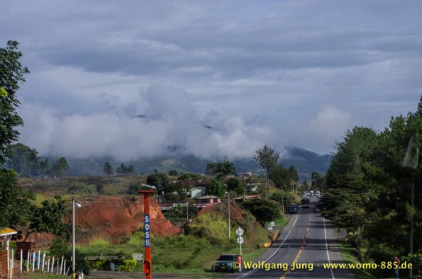 Kolumbien ist ein schönes Land mit allen möglichen Klimazonen. Im Westen der Pazifik, das Hochland mit dem Kaffeeanbau in der Mitte, im Osten an der Grenze zu Venezuela große Erdölvorkommen und im Nordosten die Karibik mit Carthagena. dies können wir nicht alles bereisen, zumal sich der Verschiffungstermin auf den 2.März verschoben hat und wir einige Tage aufholen müssen. Wir fahren durch das Hochland mit Kaffee und Wachspalmen, landschaftlich sehr schön zum fahren sehr viel "Kurbelei". Brücken gibt es nur im Tal, das bedeutet immer wieder über Pässe, dann ins Tal und wieder hinauf. Um es vorwegzunehmen, wir haben alles gut überstanden.