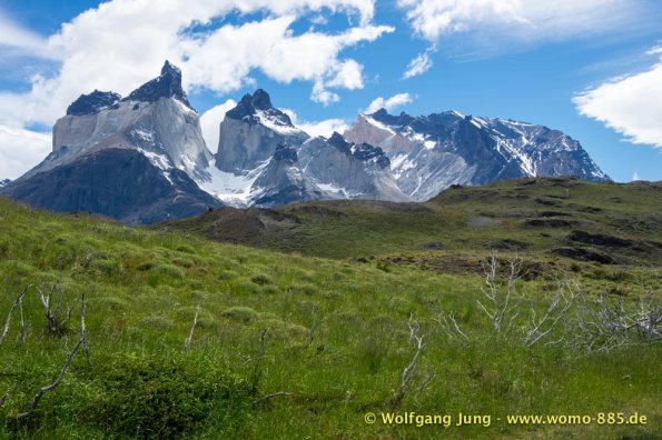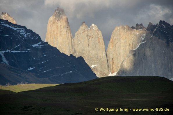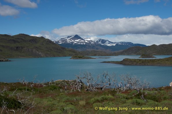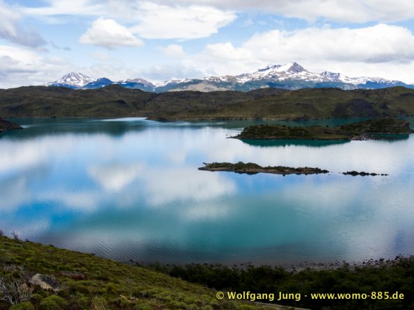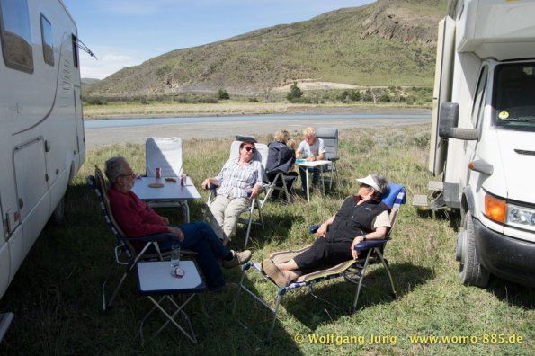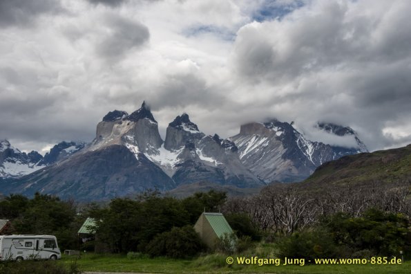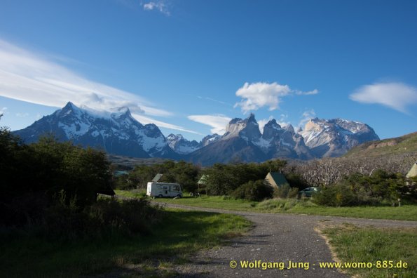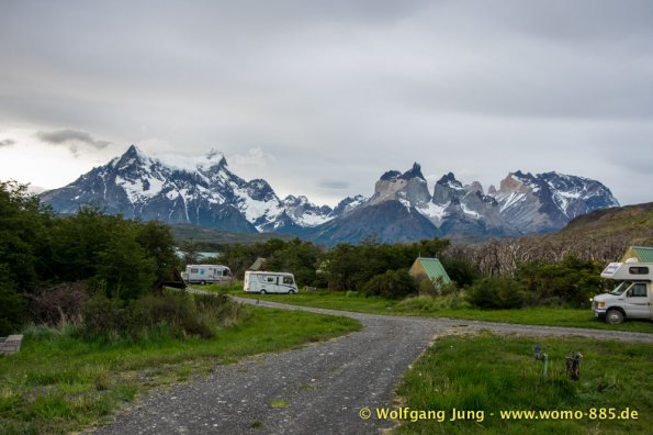 Am südlichsten Punkt unserer Reise beginnt nun die Panamericana nach Norden. Wir fahren zur Magellan-Strasse zurück um dann in Chile zum Nationalpark (NP) Torres del Paine zu gelangen. Hier stehen wir einige Tage in der Natur (kein Web, Handy, oder ähnliches) Mit Gas und der Solar Anlage für die Batterien sind wir gut gerüstet. Wir haben herrliches Wetter, spüren aber auch bei klarem, blauen Himmel den Wind Patagoniens. Größte Aufmerksamkeit beim fahren, sowie grösste Vorsicht beim Öffnen von Türen und Klappen am Wohnmobil ist notwendig.