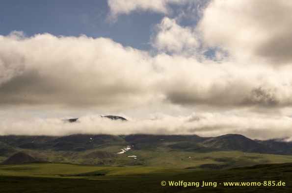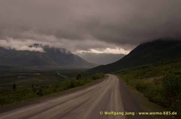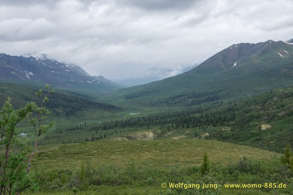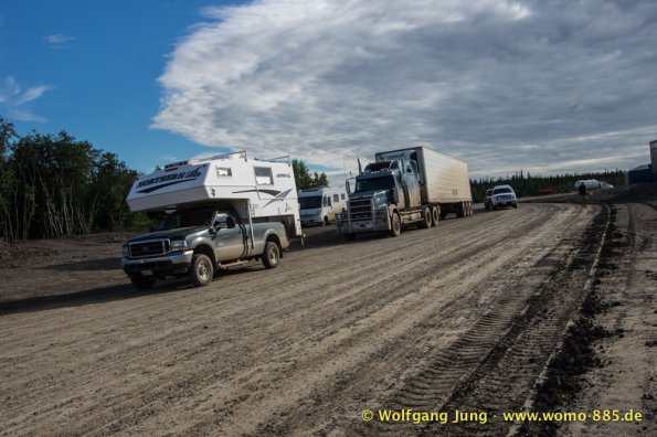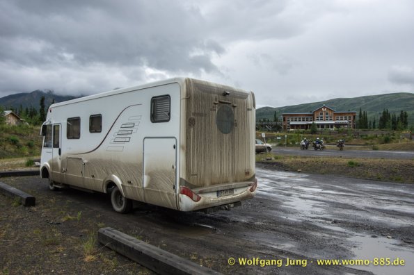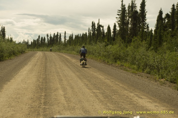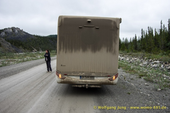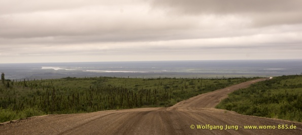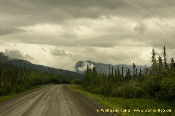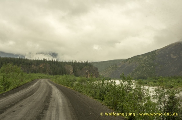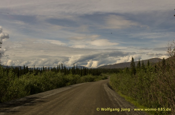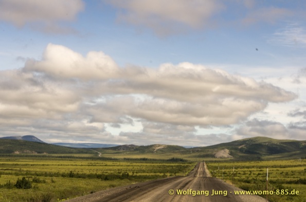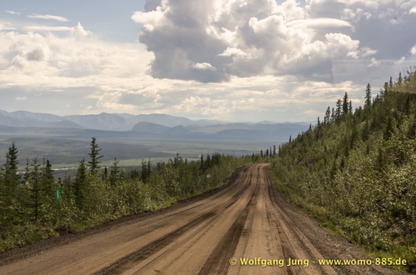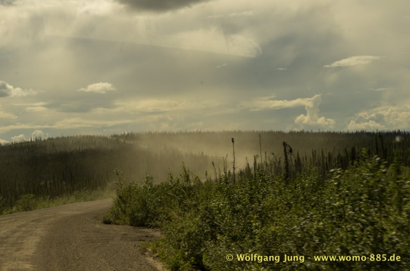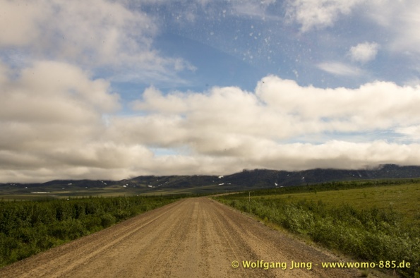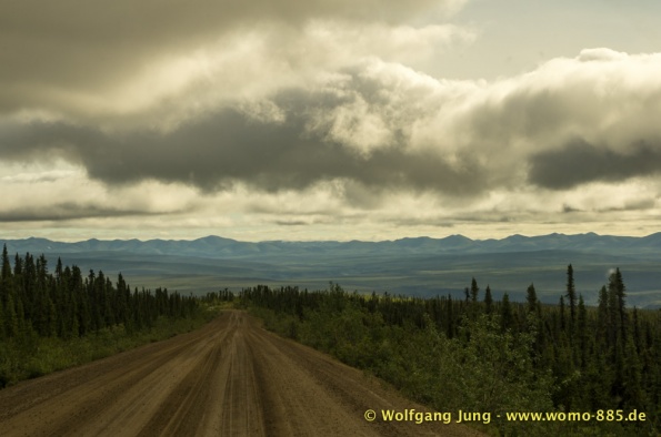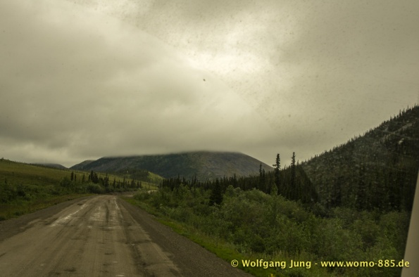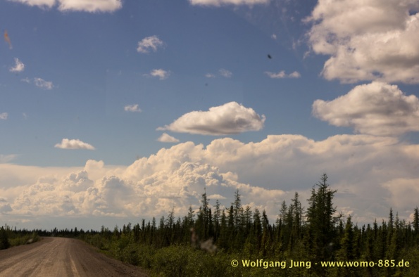 Sehr wichtig für eine solche Fahrt: Das Wetter.....also nicht wie zum Verkehrsbüro in Dawson um den Wetterbericht zu holen ....... der sieht super aus (auf dem Papier)....also los geht's.........Ach soooo, die 734 km musst du auch wieder zurück fahren, da gibt's keine Alternative und auch keinen Telefonjoker....