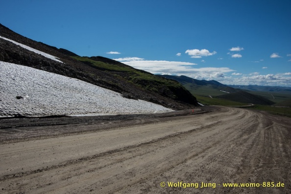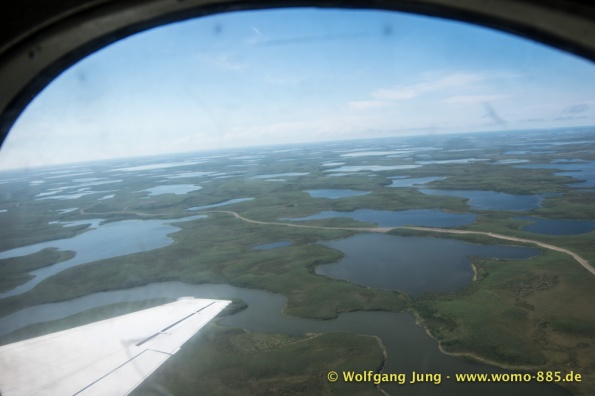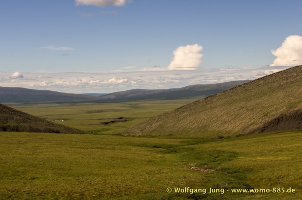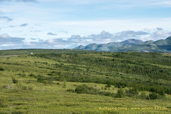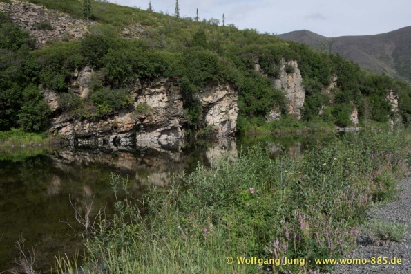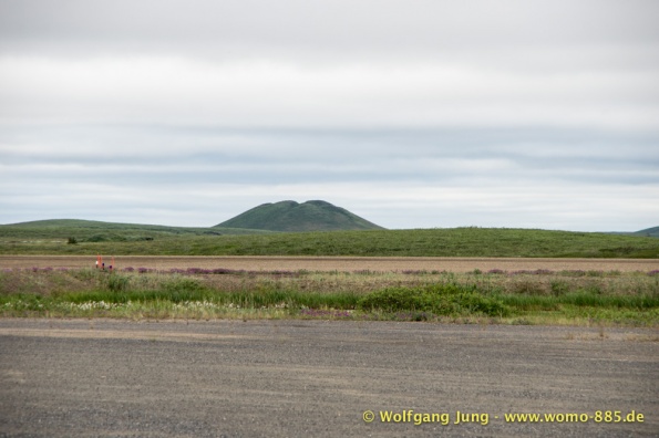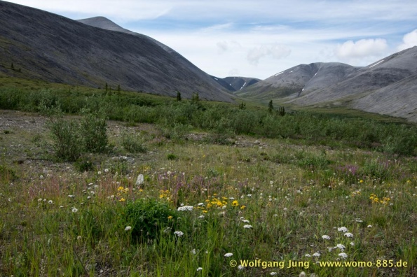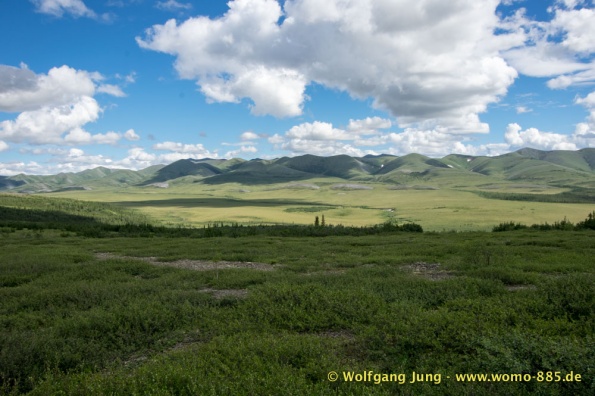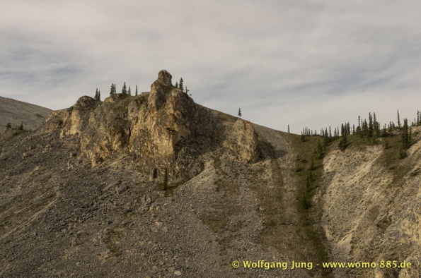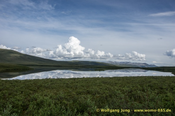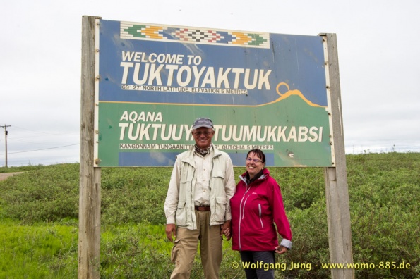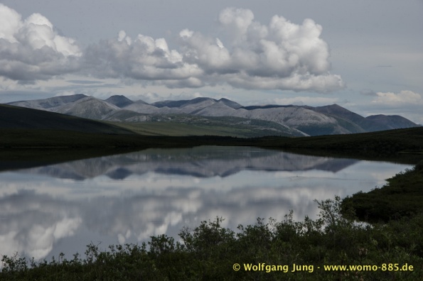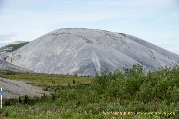 Der Dempster HWY beginnt 40 km östlich von Dawson City und führt über 734 km nach Nordwesten. Ziel ist Inuvik, die Fahrt führt durch die Ogilvie Mountains nach Eagle Plains. Hier gibt es nach 369 km eine Tankstelle mit Motel und Stellplatz. Nach weiteren gut 65 km überqueren wir den Polarkreis und kommen in die Richardson Mountains. Nach 550 km kommen wir an die Fähre des Kelly River und sind in der Mündungsebene des Mckensey River, den wir mit der zweiten Fähre überqueren. Dann kommen lange, gerade, ebene Strecken ....und dann Inuvik.