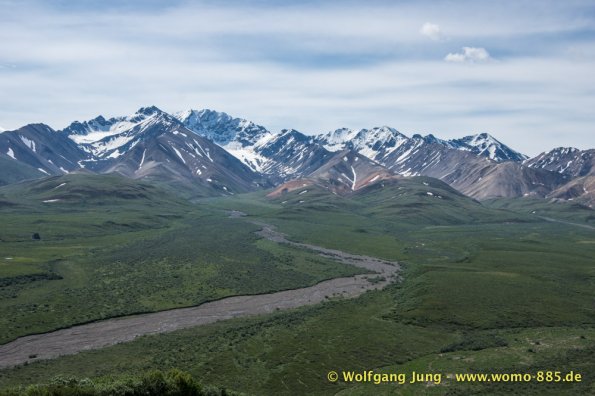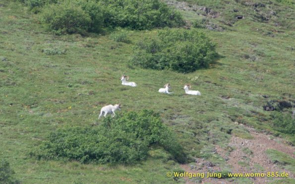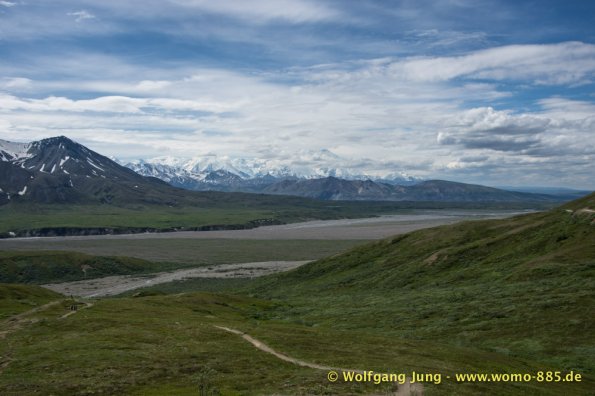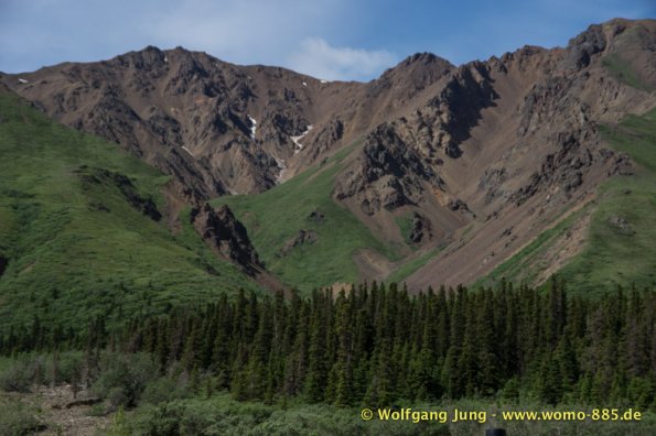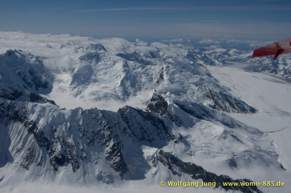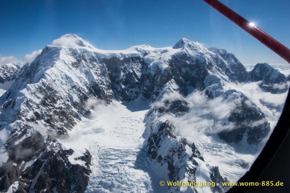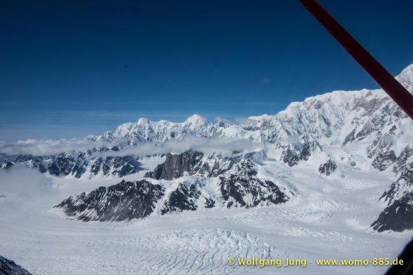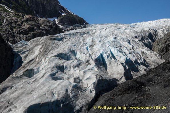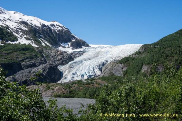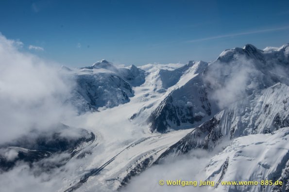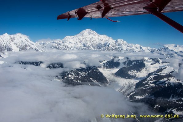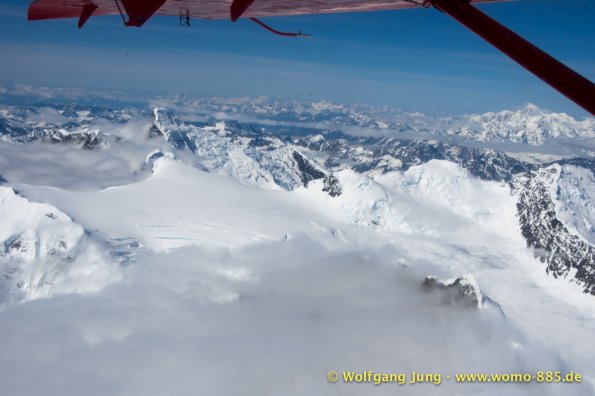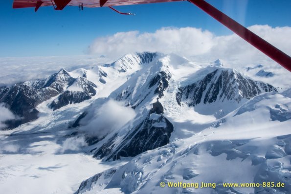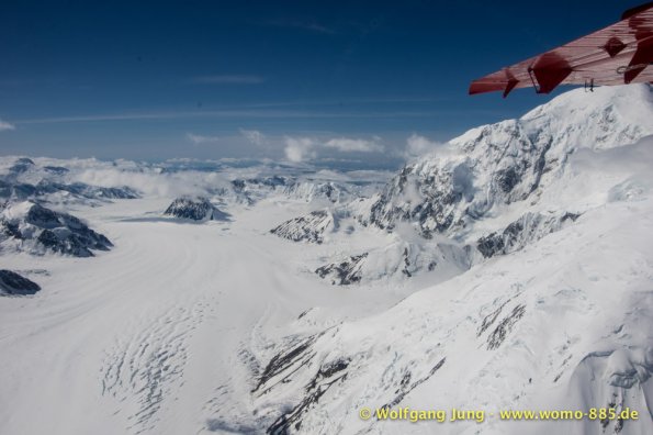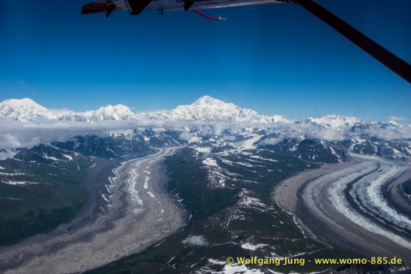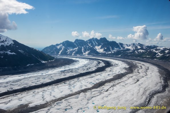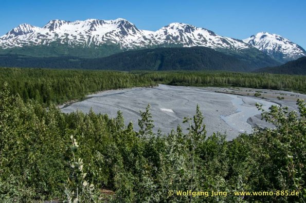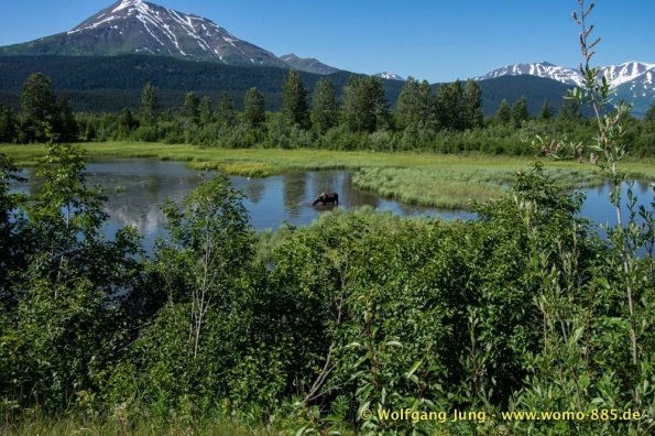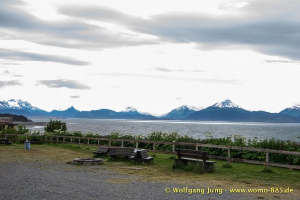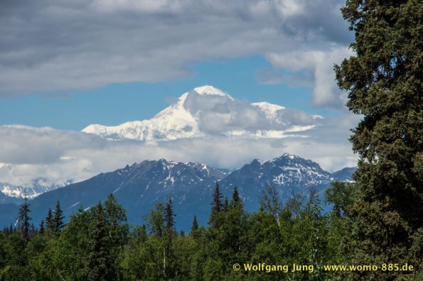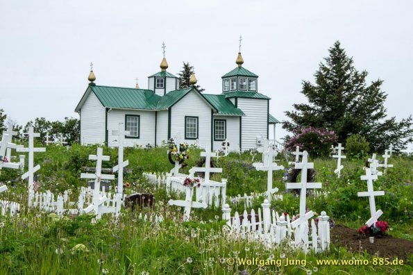 Zum Abschied aus Seward besuchen wir den Exit Gletscher. Dann geht es an die Westküste der Kenia Halbinsel Richtung Homer. In Cooper Landing waren die ersten Lachse angekommen, entsprechend groß war der Rummel, den wir schnell hinter uns gelassen haben. In Sterling gibt es Suzies Café noch immer, das Essen ist ausgezeichnet. Wir haben es auf Hin- und Rückfahrt genossen. Längs der Küste ist der russische Ursprung der Besiedlung nicht zu übersehen. in Ninilchik haben wir den russischen Friedhof mit Kirche besucht. Unser Plan von Sommer aus in den Katmai NP zu fliegen und Bären zu beobachten ist am schlechten Wetter in Katmai gescheitert. Zurück am Turnagain Arm vorbei erreichten wir Anchorage. Bei der Stadtbesichtigung treffen wir unverhofft auf Biggi & Peter, was zu einem gemütlichen Abend genutzt wurde. Weiter nach Norden ging es nach Talkeetna, von wo wir rund um den Denali flogen. Ein super Erlebnis! Im Denali NP war kein Platz für uns frei, wir haben also die Bustour gebucht und sind so 60 km weiter nach Norden gefahren um zu übernachten und am nächsten morgen zurück. Es hat sich gelohnt!
