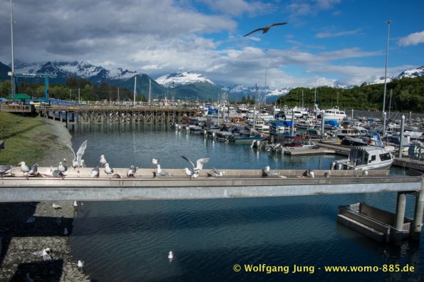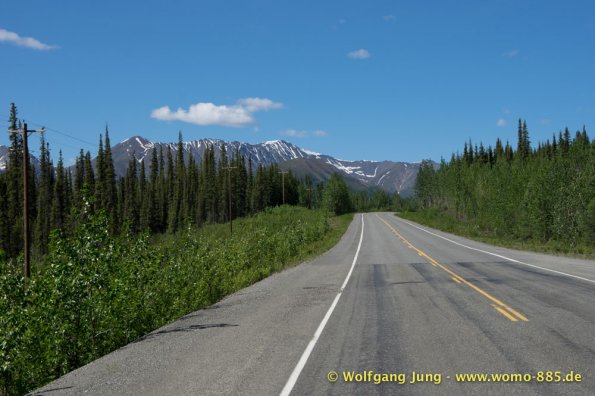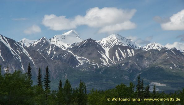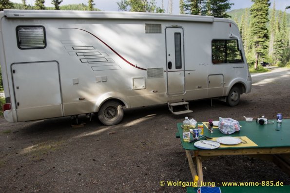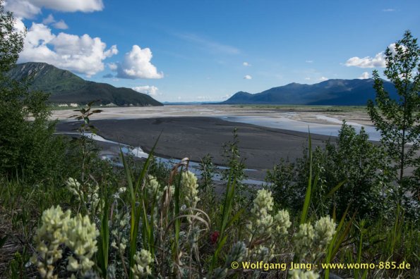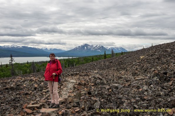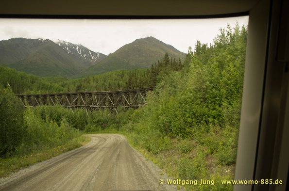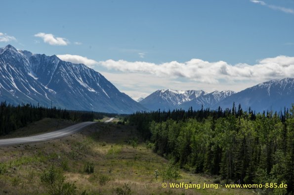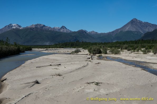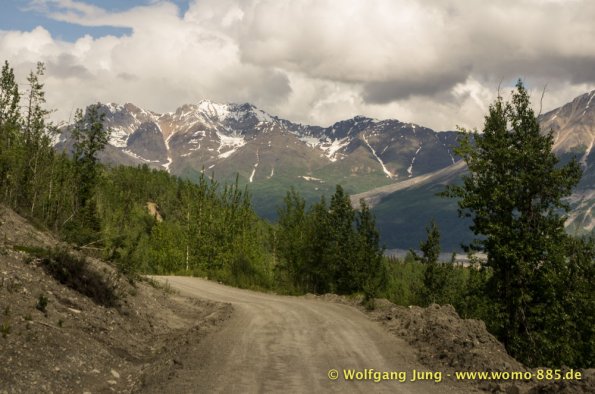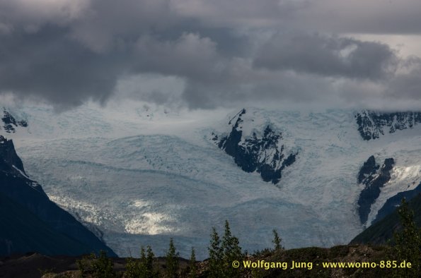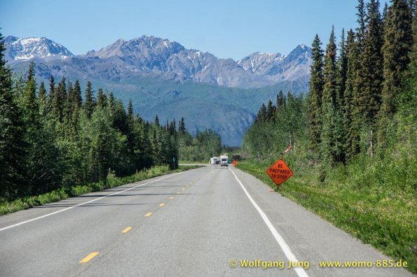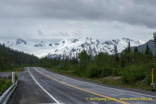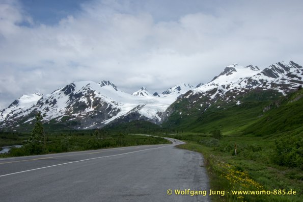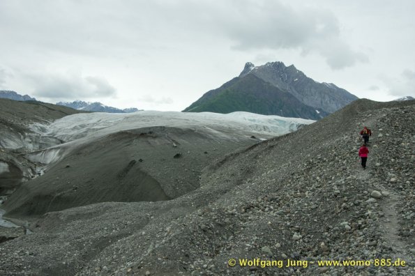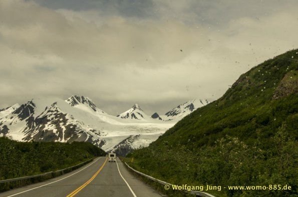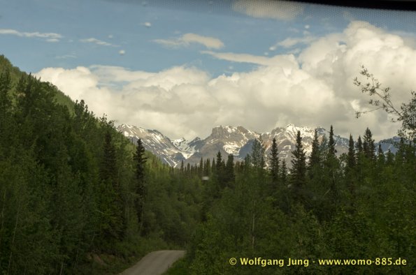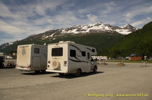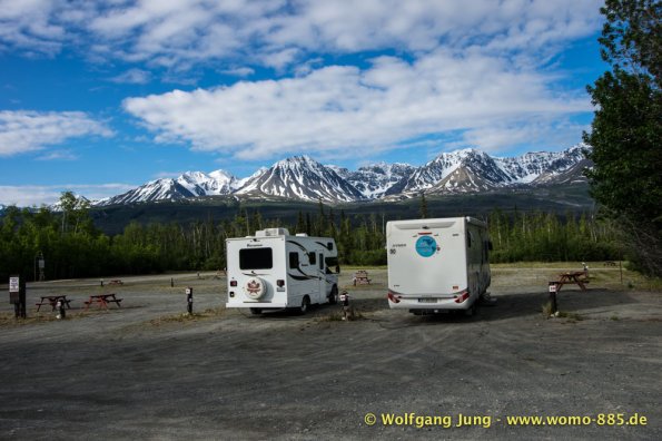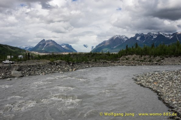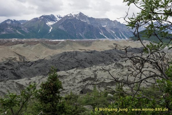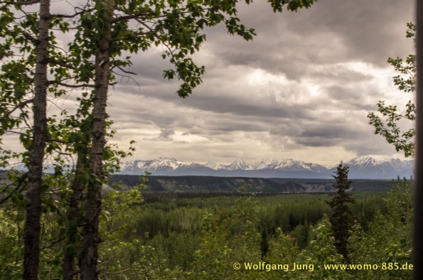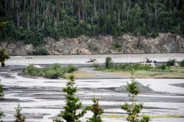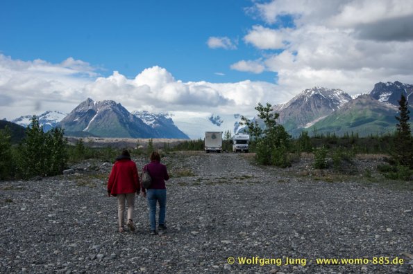 Wir haben aus D Verstärkung erhalten, Christiane und Jürgen reisen die nächsten Wochen mit uns. Alles funktionierte nach Plan, Ankunft, Hotel, Übernahme RV, Einkaufen und los ging's. Wir fuhren von Whitehorse nach Haines Junction und standen vor einem tollen Bergpanorama am Stellplatz. Nächstes Ziel war eine Wanderung zu einer Endmoräne und der Besuch in Klukshu - dritter Versuch, wieder niemand anwesend- von da aus Richtung Norden. Die geplante Übernachtung in Burwash Landing fiel aus da Alles - RV Park, Museum, etc. - geschlossen war. Nun ja durch einige Baustellen durch haben wir einen anderen schönen Platz gefunden. Am nächsten tag ging es nach Alaska Tok war das Ziel, mit Besuch bei Fast Eddy und einem Ruhetag. Über Gakona ging es nach McCarthy, wo wir am folgenden tag die Kennikott Kupfermiene besichtigt haben und zum Roots Gletscher wanderten. Von da mit Übernachtung am Chitins River nach Valdez.