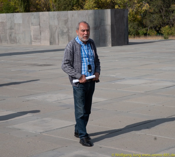 Armenien ist ein kleines Land in dessen Ostteil russische Truppen stehen und ab und zu Krieg führen. Es ist des erste christliche Land der Erde ca. 320. Dies hat das Schiksal im ab dem 7Jhd. zunehmend muslimischen Umfeld geprägt und beeinflußt. Wir hatten das das unser Guide Dimar in München aufgewachsen und zum Automobilmechaniker ausgebildet. Nach istambul gezogen zum Opernsänger ausgebildet und mit seiner Frau viele Jahre auf der Bühne gestanden, hat bis heute eine Radiosendung und ist Übersetzer vieler historischer Bücher insbesonder zum Genozid von 1915. Es war sehr schön die Geschichte aus seinem Munde zu hören, die im Grunde traurig ist uns über die Jahrhunderte von vielen Beutezügen vieler Völker berichtet, aber auch von dem armenischen Volk, das in der ganzen Welt vertreut lebt, insbesonderer seit 1915, seinem Zusammenhörigkeitsgefühl und seinem Stolz. Fremdenführer ist heute sein Hauptberuf und es hat schon etwas besonderes wenn er von der Führung Türkischer Gruppen berichtet, die aus Neugier mit historischen Dokumenten konfrontiert, feststellenmüssen, das Ihr Wohlstand auf 1915 basiert.....daher hat kein Armenier die Hoffnung, dass die Türken dies jemals anerkennen werden....