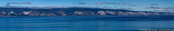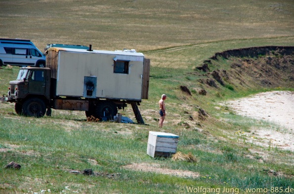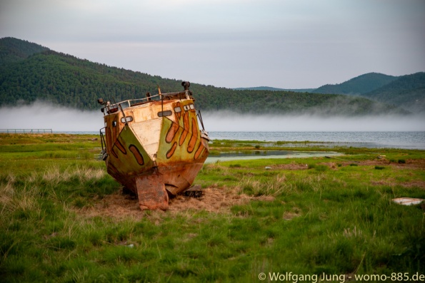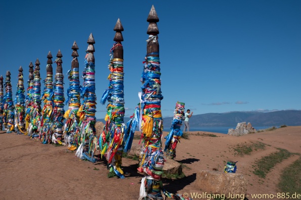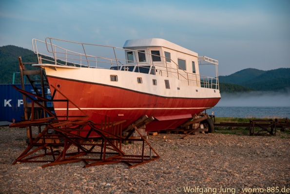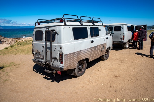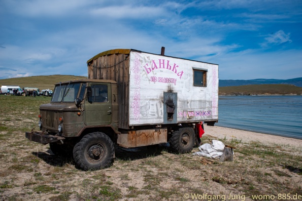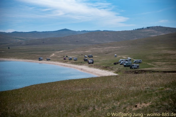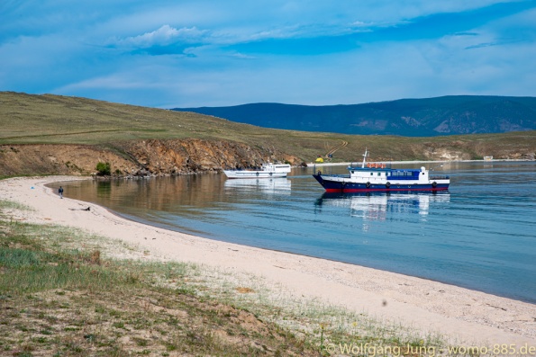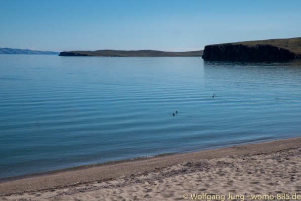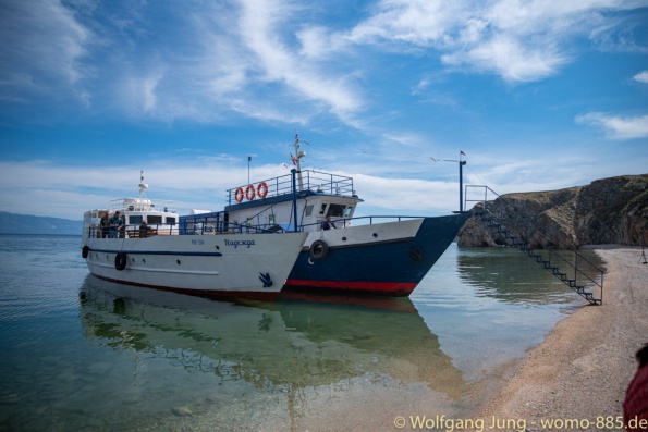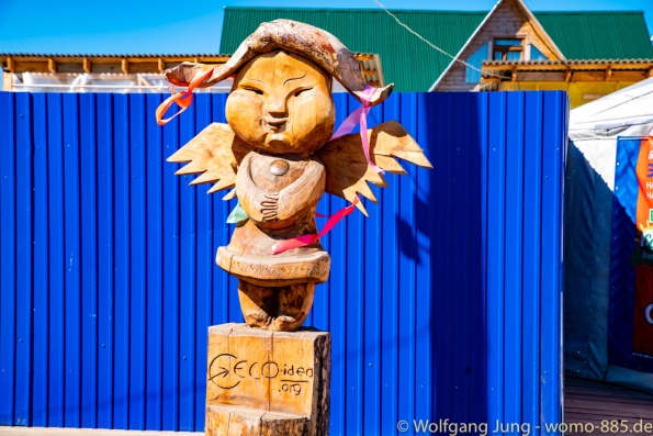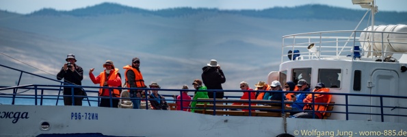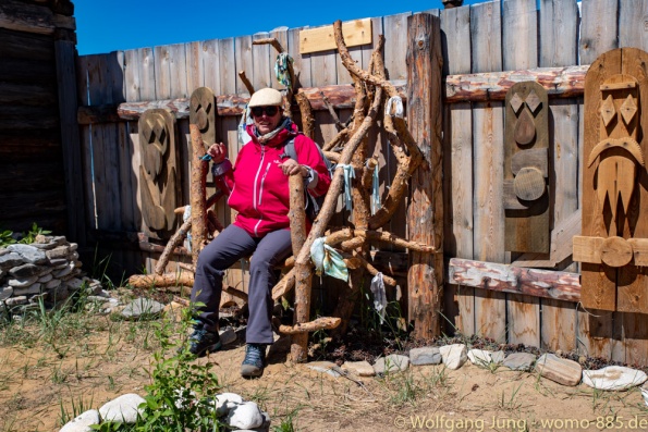 Der Baikal ist der ästeste, tiefste und größte Süßwassersee der Erde. Natürlich gibt es dazu eine russische Geschichte. Vater Baikal hat 336 fleißige Söhne (Zuflüsse) die ihm viel Freude machen und Reichtum bringen. Er hat auch eine Tochter, ein hübsches Mädchen das fröhlich war und viel tanzte, welches der Vater sehr liebte. Angara ist ihr Name und sie verliebte sich in Jennesei. Eines Nachts verschwand sie zu ihrem geliebten Jenessei und seitdem fließt das Wasser des Baikal über die Angara zum Jenessei und endet im Nordmeer. Unsere Führerein Ludmilla, die problemlos im Kabarett auftreten könnte, hat viele dieser Geschichten erzählt.....ich konnte mir die meisten nicht merken....Noch was..die hiesigen Temperaturen...das Wasser des Baikal +8-10 C, wenn bewölkt oder Regen 10-12 C, Nachts min. +4C, wenn die Sonne scheint 20-24C......Viel Spass mit den Bildern....