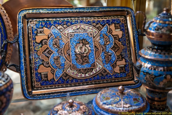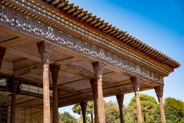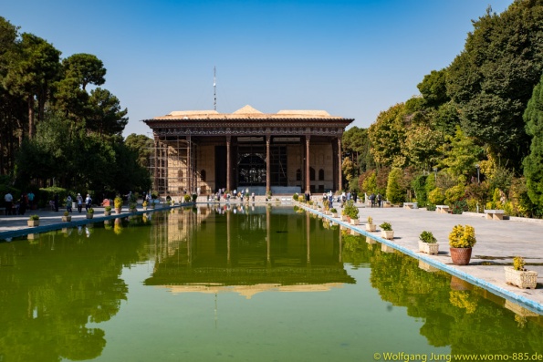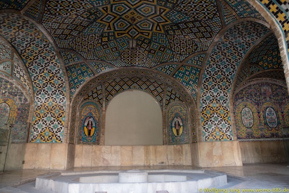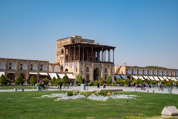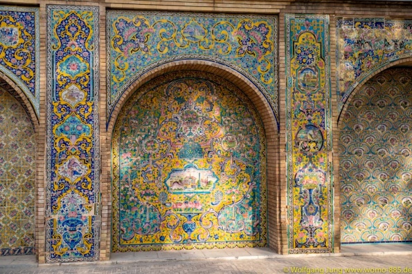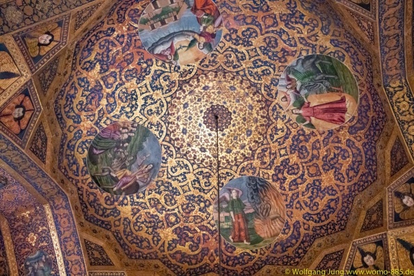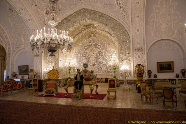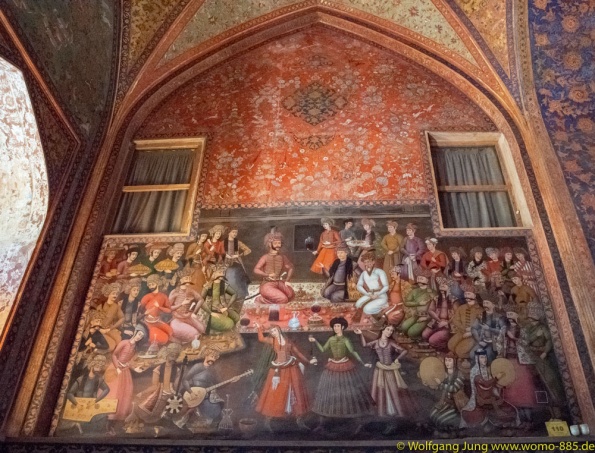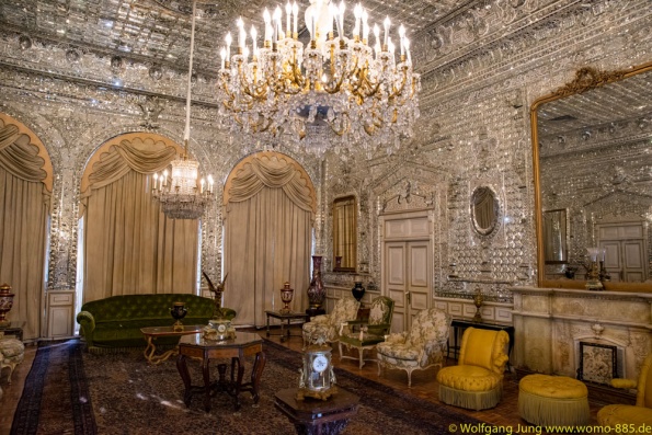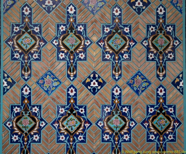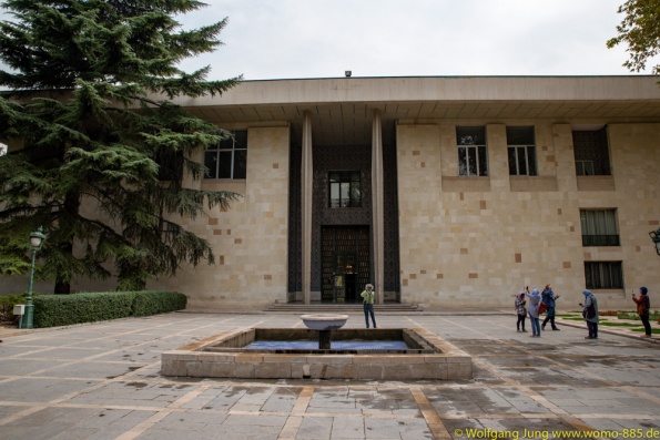 Isfahan, Perle des Iran......40 Säulen Palast, Meydan-e Imam der Hauptplatz der Stadt 560 x 160 m, ursprünglich das Polofeld des Herrschers, der Basar liegt rund um den Platz, die privatmoschee des Abbas. Nachmittags geht es ins Armenische/Jolfa Viertel zur Vankkirche. Abschluss in einem privaten Musikinstrumente Museum mit Livemusik...sehr schön. Vom 1.700 m hoch gelegenen Isfahan führt die N7, vorbei an Qom nach Teheran. Wir stehn im Süden auf 1.050 m, vor dem Chomenie Shrein. Teheran Hauptstadt des iran, mit 10-15 Mio. Einwohnern, je nach Zählweise, Wirtschaftmetropole mit ständigem Verkehrschaos, Im Norden auf 1.700 m liegt der Privatpalst des Schah. Ein Gebäude aus den 1960ern, mit einer Mischung aus Technik und Ausstattung der Moderne und vielen Europäischen Antiquitäten.....Im Zentrum am Chomenie Platz liegt der Golestan-Palast...hat heute nur noch 1/10 seines Geländes und dient als Museum....