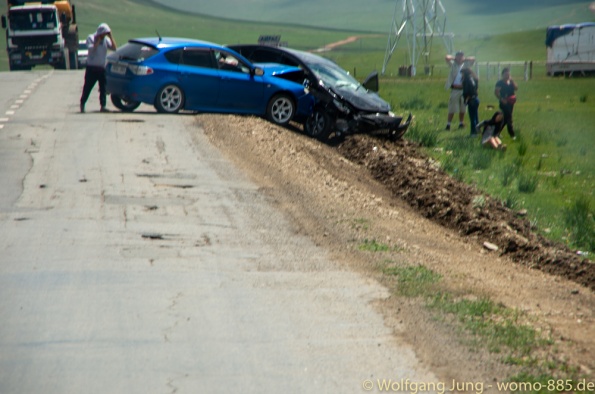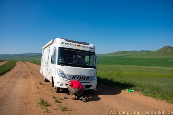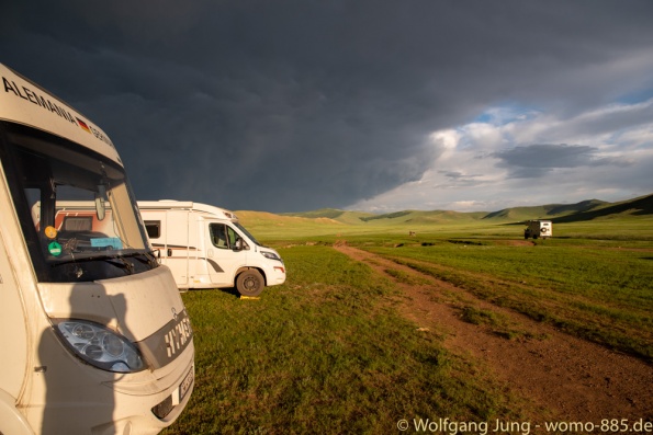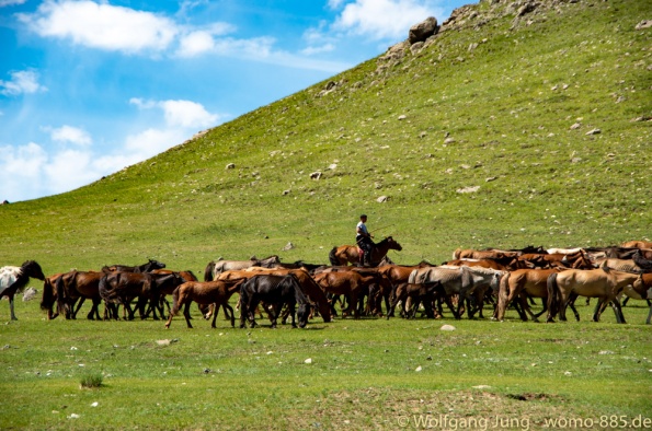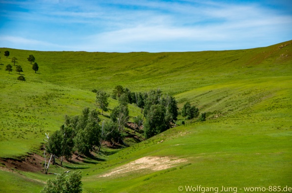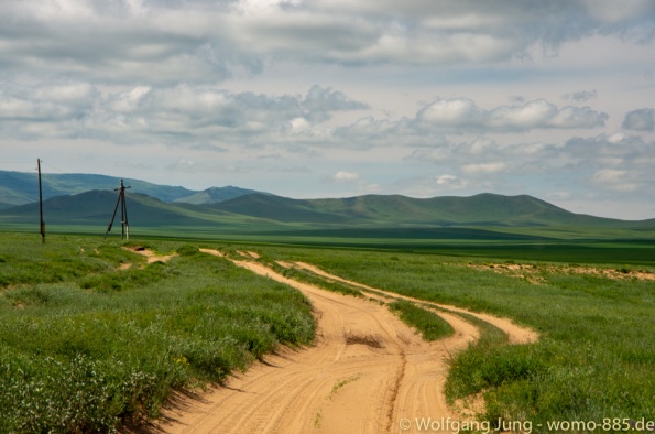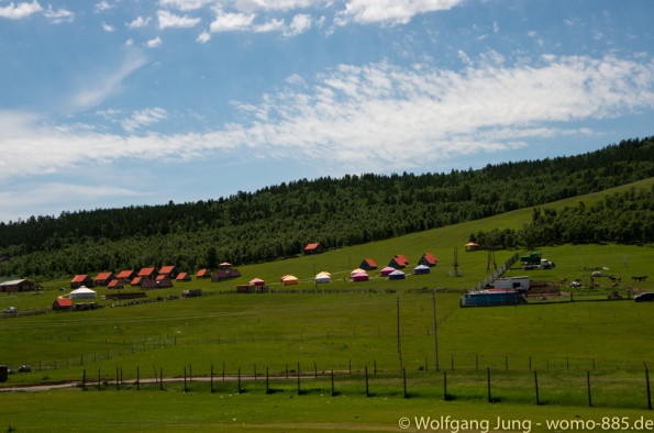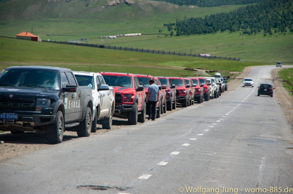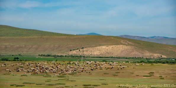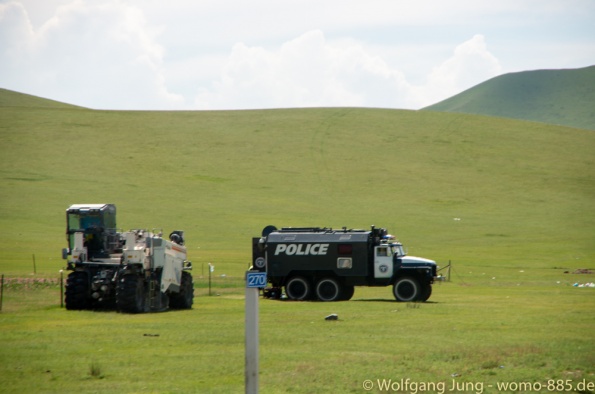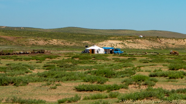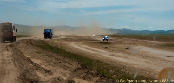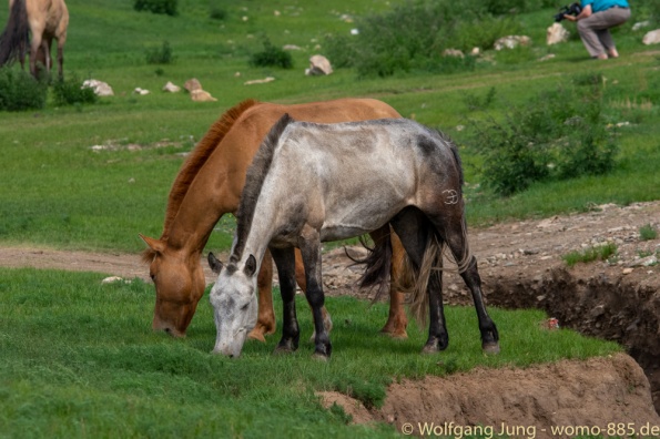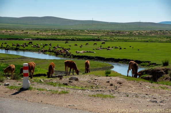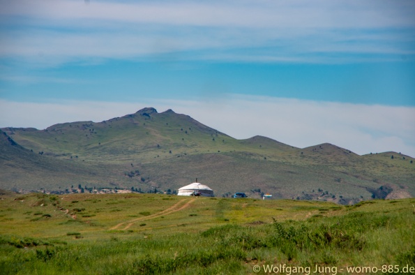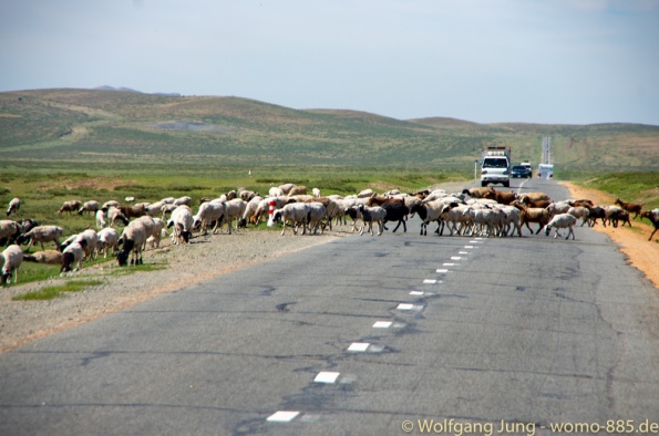 Was für ein Kontrast nach der Reise durch Russland: Kein ständiges Internet, keine Birken, keine Registrierungsprozedere. Schlechte Strassen, Steppe, Freiheit. Ein großes sehr Rohstoffreiches Land mit ca. 3,5 Mio. Einwohnern, das sind 2 je km2, über 60 Mio. domestizierter Nutztiere. Das beschreibt auch schon einen Teil der Probleme, Russen und Chinesen kämpfen um Einfluss auf die Ressourcen, die Anzahl der Tiere passt kaum noch zum Futterangebot der Steppe. Nomaden halten bis zu 7 Tierarten (Pferd, Rind, Kamel, Ziege, Schaaf, Yak und mongolisches Rind) in einer Herde...wenn die durchgezogen ist.....Dazu kommt die ungeplante Zersiedelung der Landschaft......aber für Reisende und Fotografen....ein Eldorado...was mit Vorsicht zu geniesen ist.....
