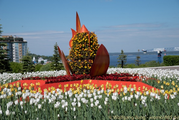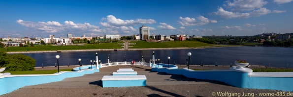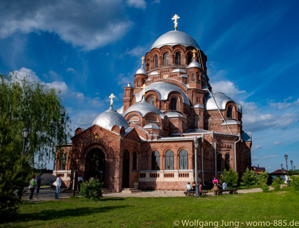 Wir besuchen im Mai Segiev Possad, Lawra, höchstes Kloster in Russland. es sind noch keine Ferien und der Unterschied zum Besuch letztes Jahr ist bemerkenswert, wenig Besucher, kein Gedränge...es macht einfach Spaß. In Suzdal geht das Schuljahr gerade zu Ende, nur die Schüler der 8. und 11. Klassen müssen im Juni noch Ihre Prüfungen ablegen. Alle ANderen haben 3 Monate Sommerferien...insgesamt gibt es 4 Monate Ferien pro Schuljahr in Russland. In Nizhniy Novgorad beginnt für uns das Neue. Es ist ausgesprochen erfreulich zu sehen wie sauber Strassen, auch die M7, Plätze und Städte sind. Je weiter östlich wir kommen um so mehr dominieren LKW und Busse die M7. Cheboksary ist die Hauptstadt der Teilrepublick Tschuwaschien. Tschuwaschen sind Orthodoxe Christen. Danach dominieren die Muslime. ZUm Abschluß besuchen wir eine Insel in der Wolga, Swijaschsk, über einen Damm aus dem 18.JHD zu erreichen....