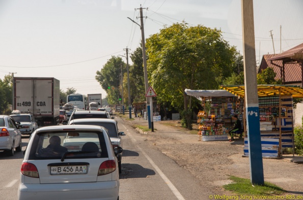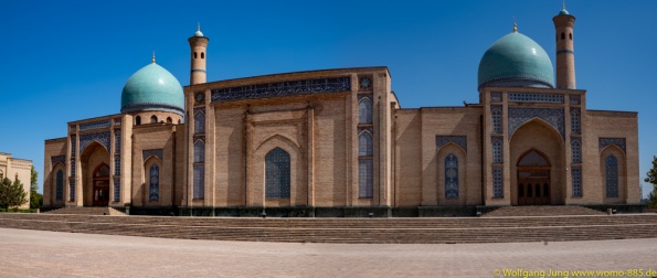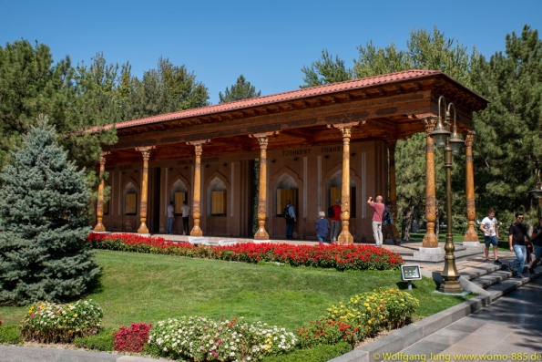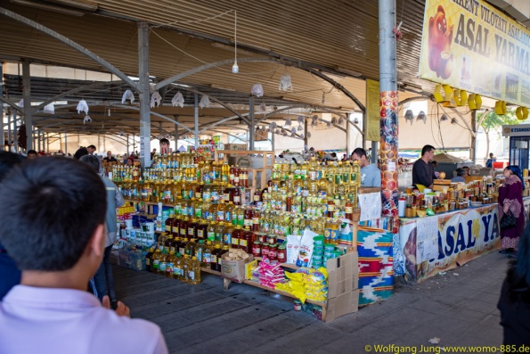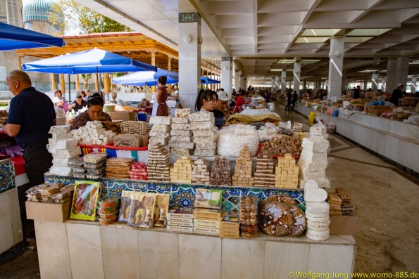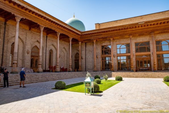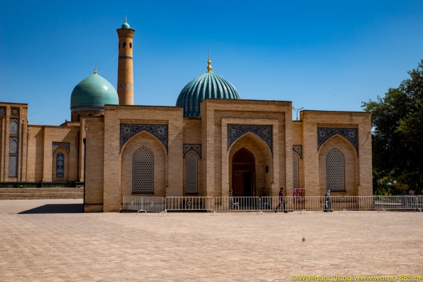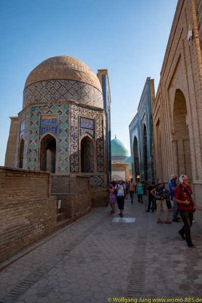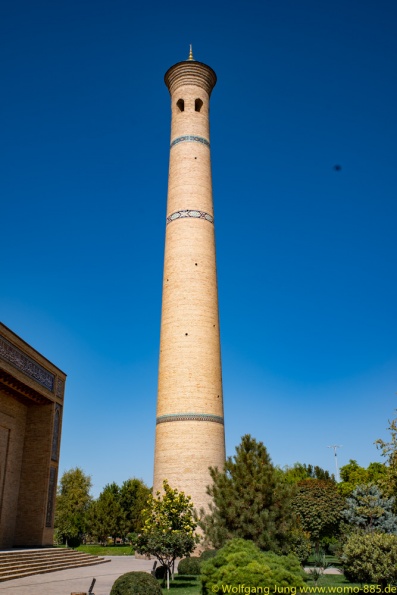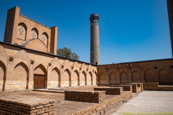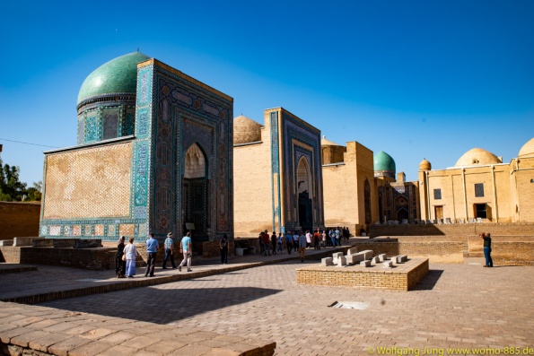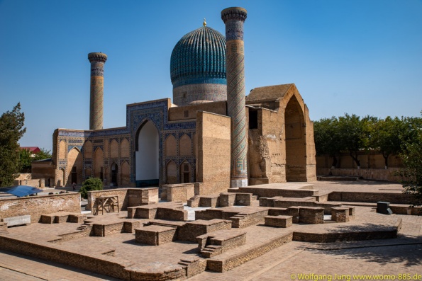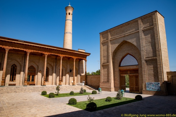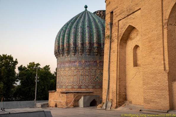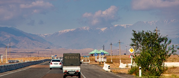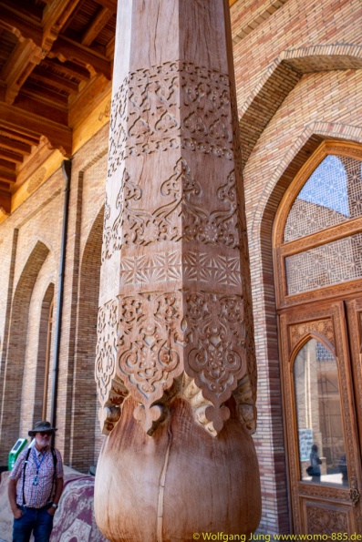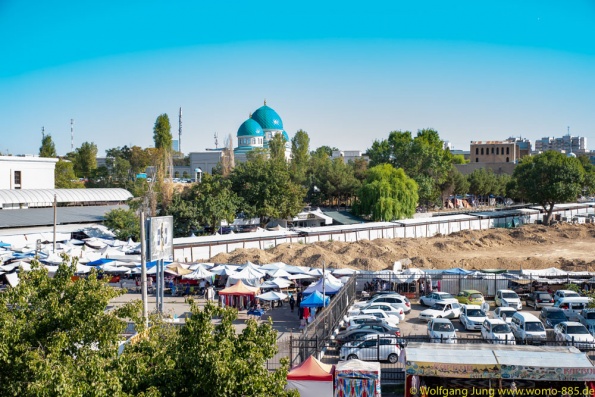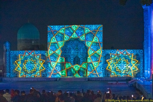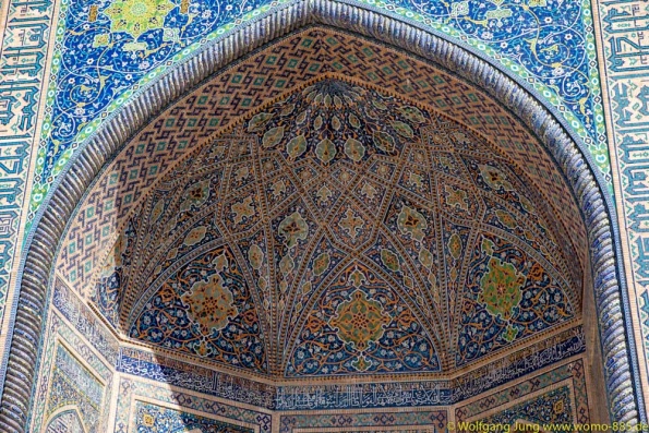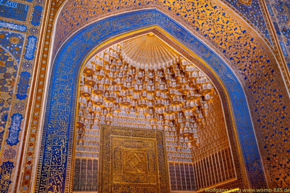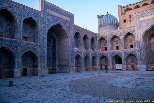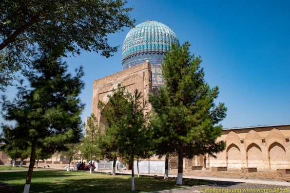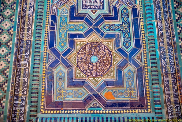 mit jedem Grenzübergang ändert sich "fast" Alles. Usbekistan ist reich an Einwohnern > 30 Mio. Erdgas ( vieles was als "russisches" Erdgas bei uns ankommt stammt von hier, Bodenschätze und nicht zuletzt Baumwolle. Vor den Mongolen gab es ein Reich von der Türkey bis Indien, einschließlich Iran und Irak mit der Hauptstadt Samarkand. Dieses Reich gründet mit und auf dem Islam. Es begründete eine Architektur die sehenswert ist. Handwerklich ein Traum. Ich zeige die Bilder mit den Namen die ich behalten habe....für Alles weitere gibt es Reiseführer, etc.....Meine sehr ausführliche fotografische Dokumentation des Registanplatzes bringt meine Verehrung für dieses Meisterwerk zum Ausdruck...