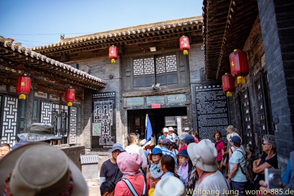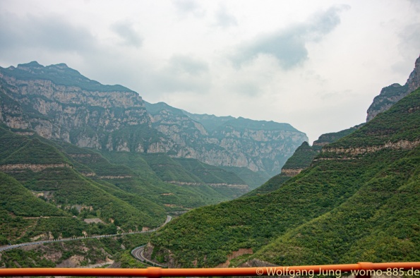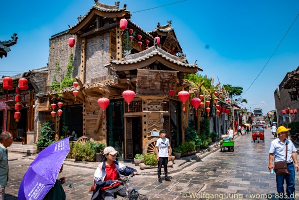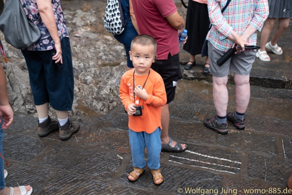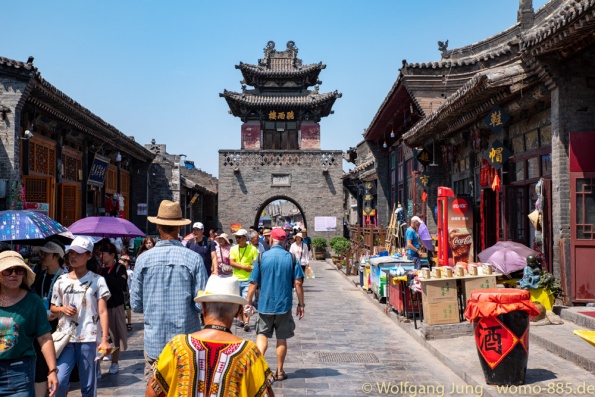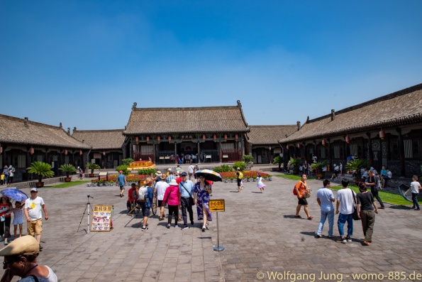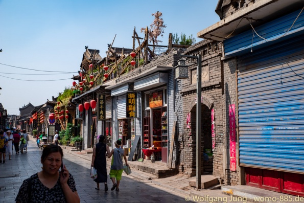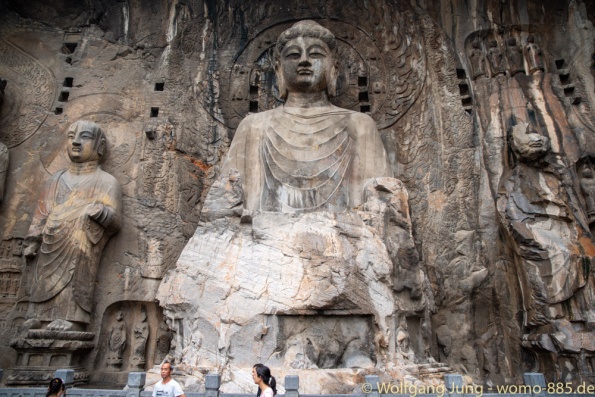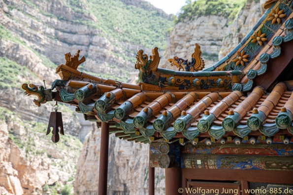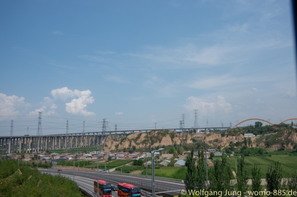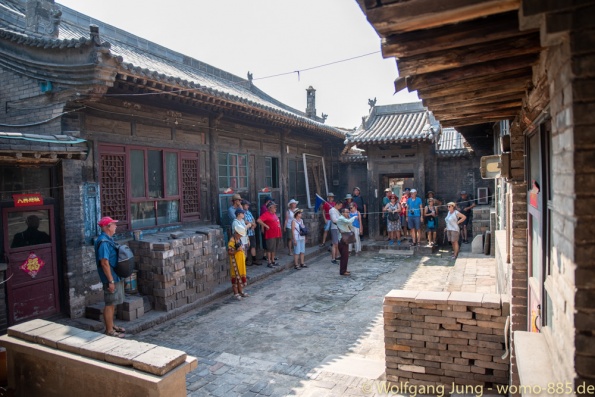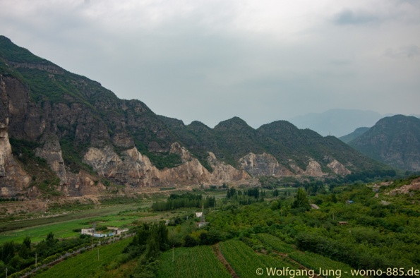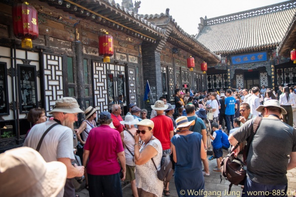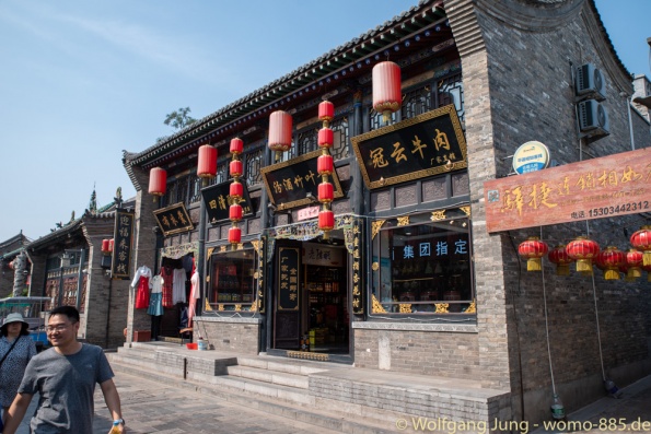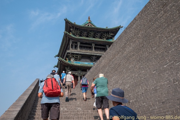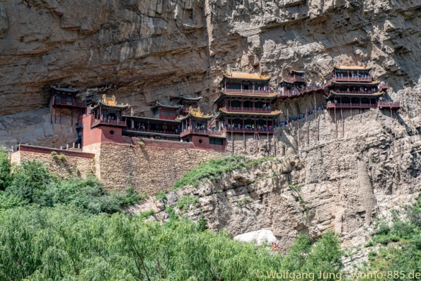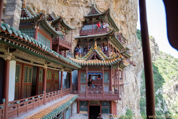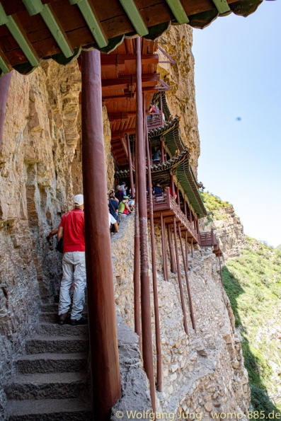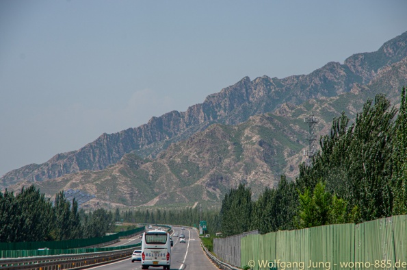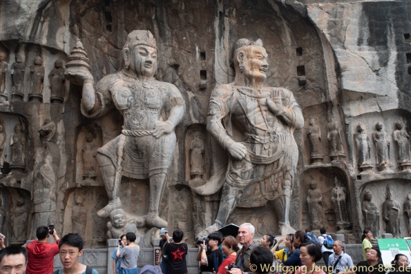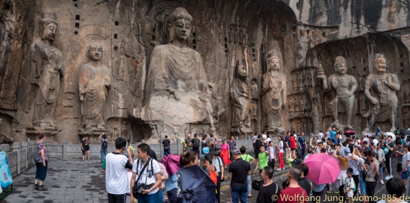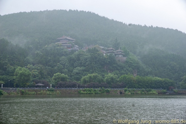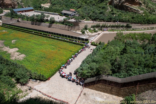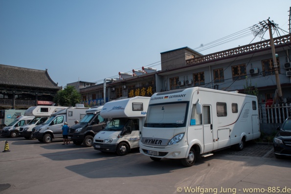Wir verlassen Peking über den 2. Ring und nehmen dann die G6 nach Datong. Nach ca. 60 km kommen wir in Juyongguan an die Chinesische Mauer, die wir "Alleine" besichtigen. Das Wetter war heiß + 34 C, aber wir sind froh aus dem küstennahen Peking auf +1.046 NN nach Datong zu fahren. Hier ist es wesentlich trockener und Nachts kühlt es schön ab. Von hier aus besuchen wir das einzige hängende Kloster Chinas Xuankong Si. Eine tolle Anlage gebaut im wesentlichen im 6 Jhd. Nun fahren wir in das historische Städtchen (45.000 EW) Pingyao. Wir stehen direkt am Nordtor auf einem öffentlichen Parkplatz. Es gibt eine komplett erhaltene historische Stadtmauer, die erste Bank Chinas und einen historischen Bürgermeistersitz, viele Gasttätten und Geschäfte. Luoyang ist unser nächstes Ziel, mit Regen und niedrigen Temperaturen von 30 C eine echte Waschküche. unsere chinesischen Guides finden das gut, denn normalerweise sind es hier 42 C um diese Zeit. Wir besichtigen die Longmen Grotten 100.000 Buddhas wurden hier zwischen 483 und 907 in den Fels geschlagen. An diesen Plätzen waren wir meist die "Einzigen Langnasen"..........