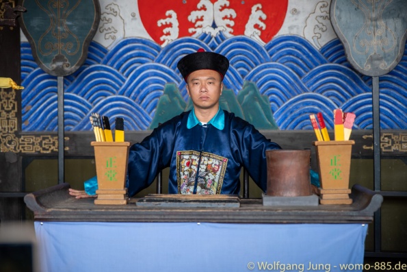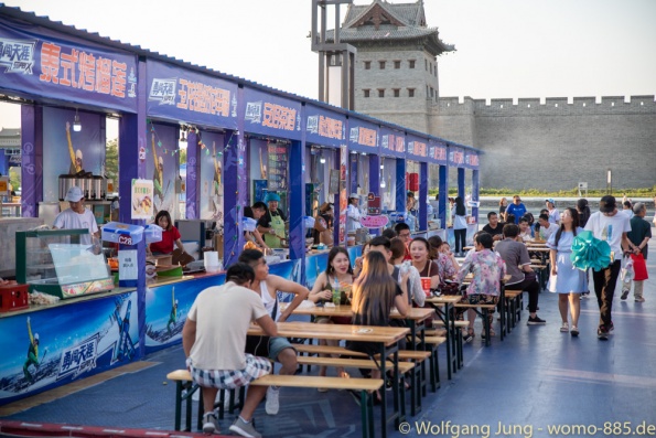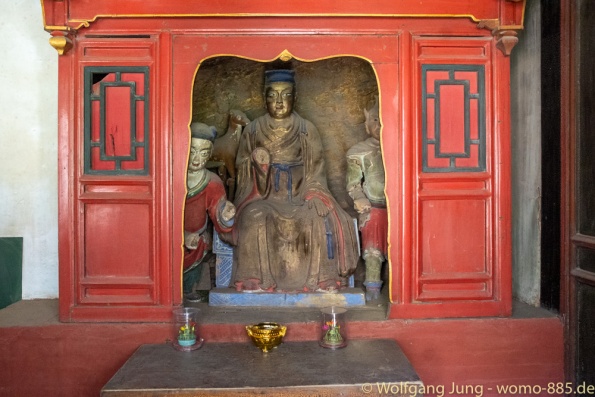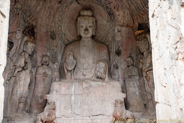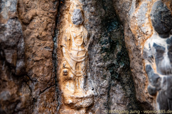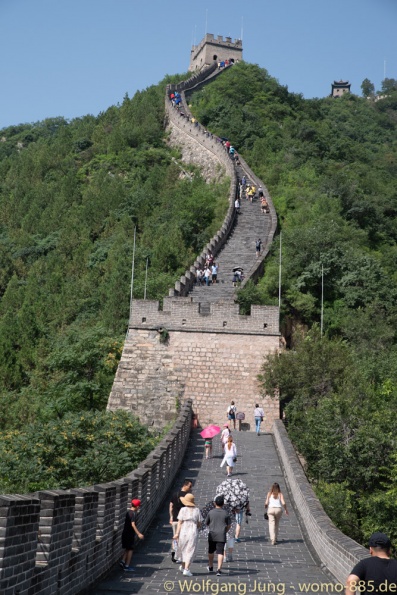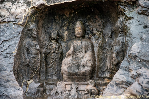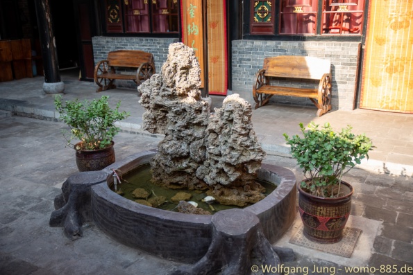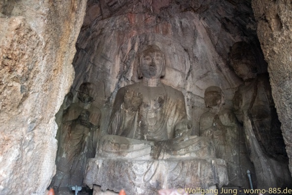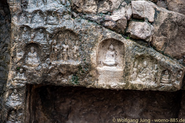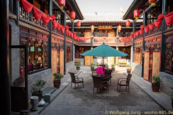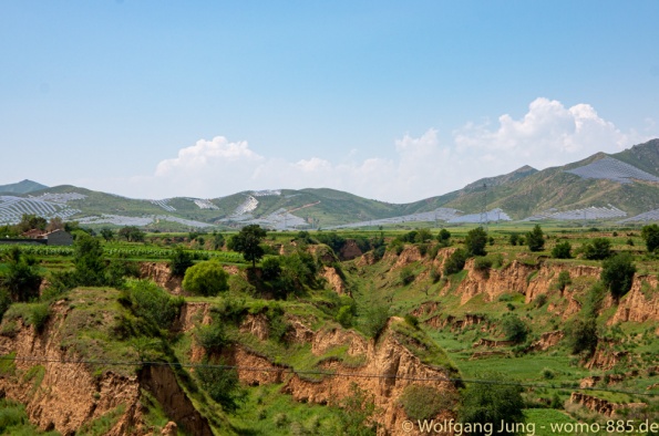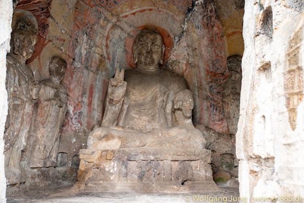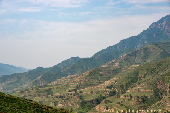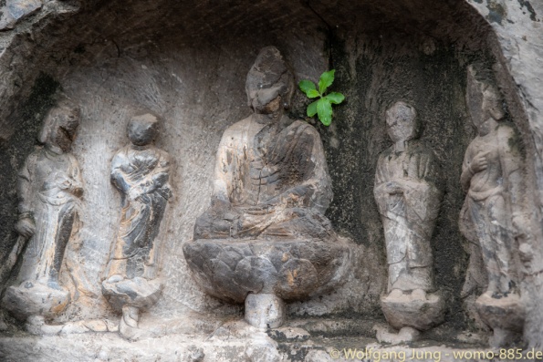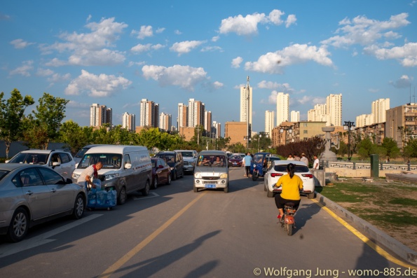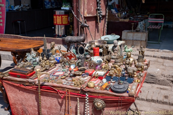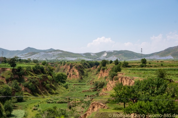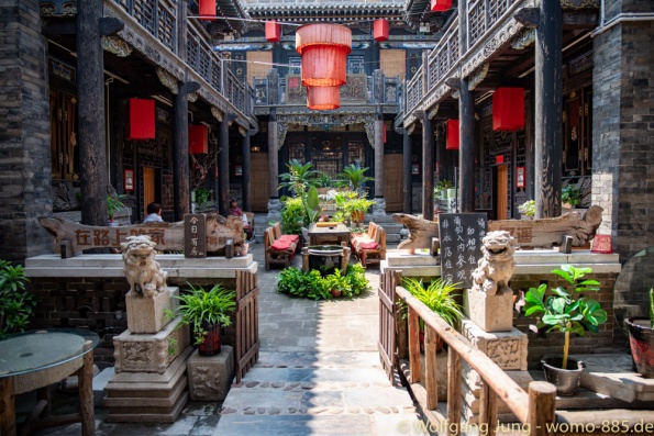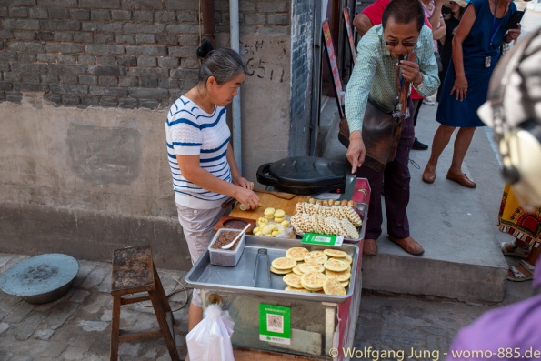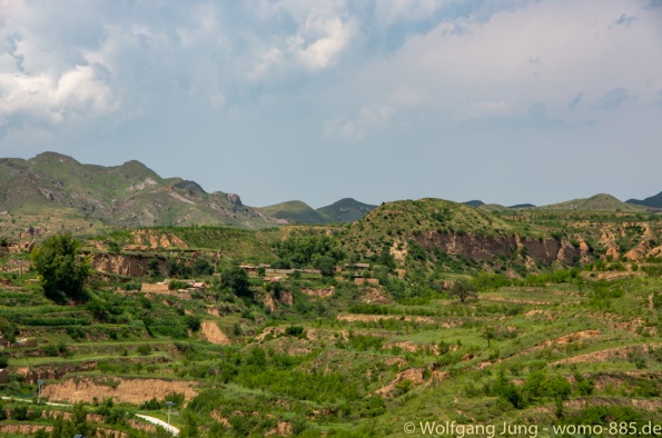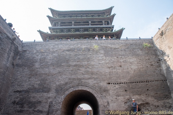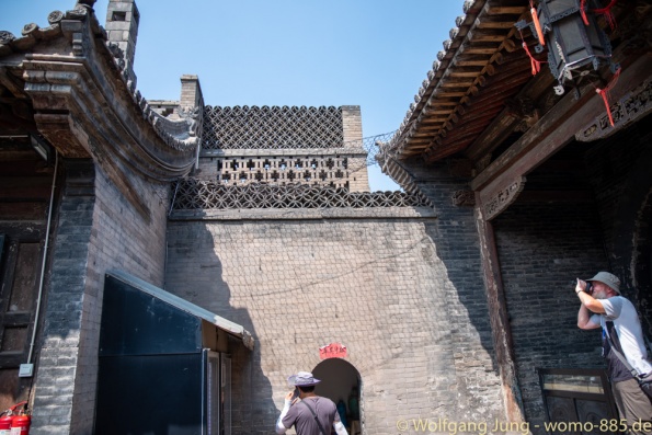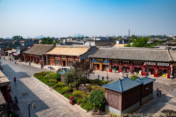 Wir verlassen Peking über den 2. Ring und nehmen dann die G6 nach Datong. Nach ca. 60 km kommen wir in Juyongguan an die Chinesische Mauer, die wir "Alleine" besichtigen. Das Wetter war heiß + 34 C, aber wir sind froh aus dem küstennahen Peking auf +1.046 NN nach Datong zu fahren. Hier ist es wesentlich trockener und Nachts kühlt es schön ab. Von hier aus besuchen wir das einzige hängende Kloster Chinas Xuankong Si. Eine tolle Anlage gebaut im wesentlichen im 6 Jhd. Nun fahren wir in das historische Städtchen (45.000 EW) Pingyao. Wir stehen direkt am Nordtor auf einem öffentlichen Parkplatz. Es gibt eine komplett erhaltene historische Stadtmauer, die erste Bank Chinas und einen historischen Bürgermeistersitz, viele Gasttätten und Geschäfte. Luoyang ist unser nächstes Ziel, mit Regen und niedrigen Temperaturen von 30 C eine echte Waschküche. unsere chinesischen Guides finden das gut, denn normalerweise sind es hier 42 C um diese Zeit. Wir besichtigen die Longmen Grotten 100.000 Buddhas wurden hier zwischen 483 und 907 in den Fels geschlagen. An diesen Plätzen waren wir meist die "Einzigen Langnasen"..........