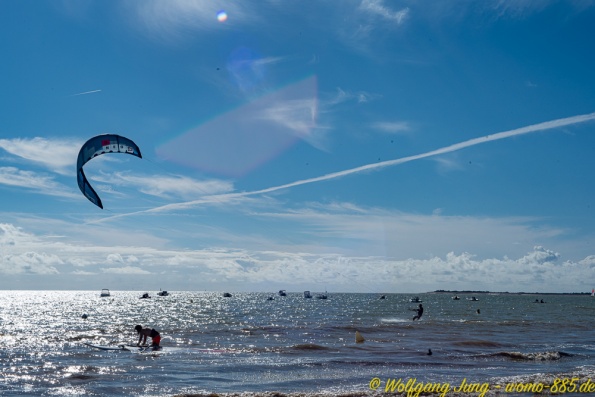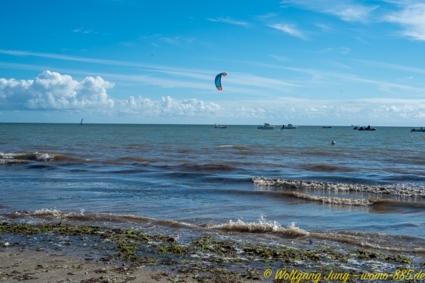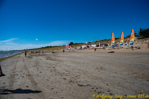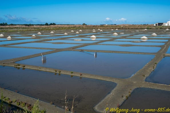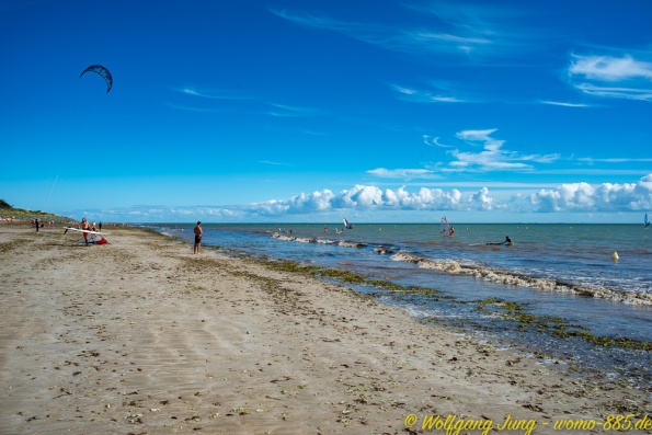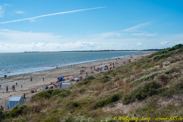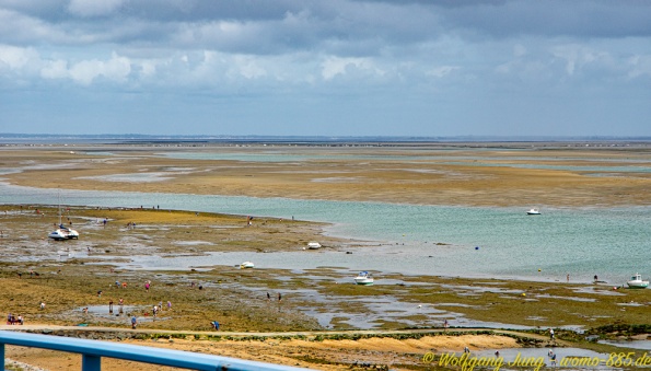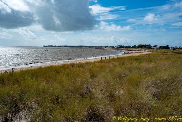 Weiter nach Süden entlang der Küste besuchen wir noch die Inseln - Ile de Noirmontier und Ile de Re vor La Rochelle. Beide sind bei Urlaubern beliebt. Ein gut ausgebautes Radwegenetz führt über die Inseln, was insbesondere an Wochenenden von vielen genutzt wird. Die Meersalzgewinnung auf der Ile de Noirmontier ist bekannt, wir haben in einer kleinen Manufaktur eingekauft...direkt bein Erzeuger. Die Strände beider Inseln sind groß, aber der Sand ist mit Algen, teilweise auch Plastikresten, belegt. Das macht das eintauchen in das schöne, warme Wasser des Atlantik etwas unangenehm.
