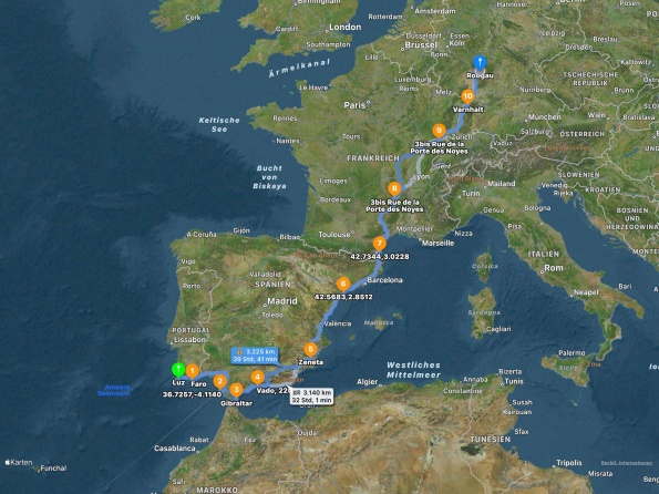 Von Gibraltar fuhren wir nach Almayat, wo wir gemütlche, meist warme Strandtage genossen. Vom Campingplatz mit dem E-Bike in die Stadt, 5 km, kein Problem. Gute Einkaufsmöglichkeiten und Restaurants...was will man mehr......dann wollten wir wieder nach Hause.....das Wetter mit Regen und Kühle eleichterte den Abschied.