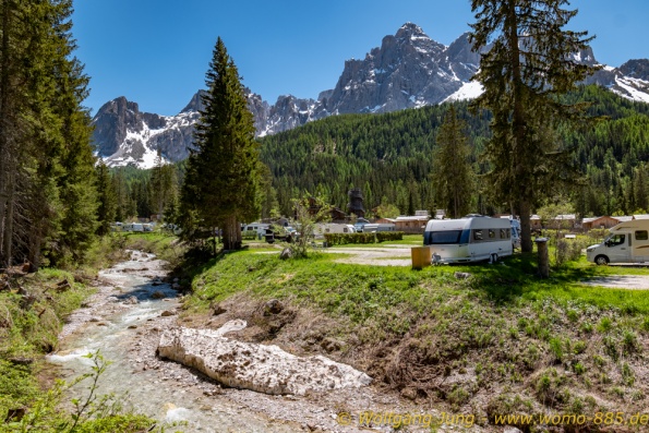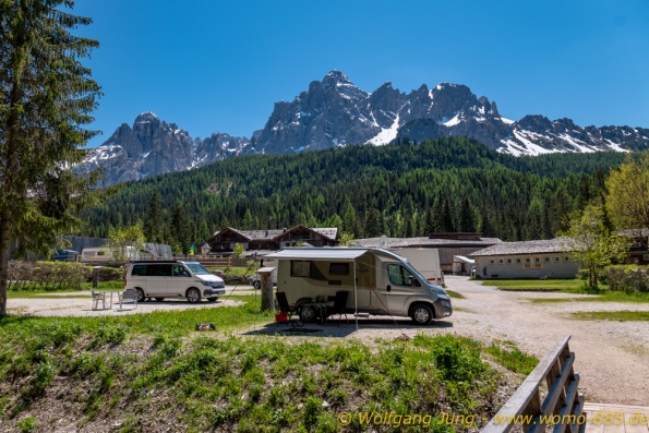 Zwischen der ersten und zweiten Corona Impfung brauchten wir Luftveränderung. Margit hatte Sexten als Ziel ausgesucht. Wir fahren nach Möglichkeit werder Autobahn noch Mautstrassen und haben daher 3 Tage für die Anreise geplant. Das hat sehr gut funktioniert. Oberhalb von Sexten liegt Der Caravan Park Sexten, ein toller Ausgangspunkt für unsere Aktivitäten. Jede Stunde fährt ein Bus ins Tal Richtung Innichen / Toblach mit dem wir sehr gut alle Ziele errecihen. Das WOMO bleibt auf dem sehr schönen Campinglatz mit sehr guten Sanitäreinrichtungen, einem SPA & Wellness Bereich, Supermarkt sowie empfehlenswertem Restaurant. Wir hatten großes Wetterglück, fast nur Sonne und angenhme 20 - 25 C. Die Zeit verging ganz fix...
