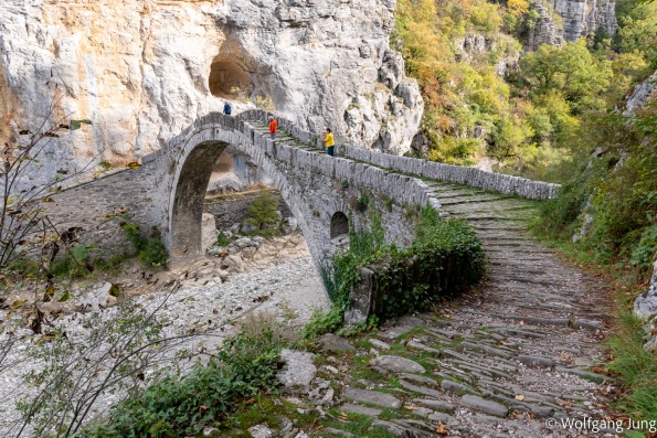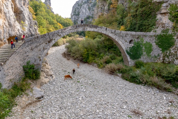 Nach dem Höhepunkt Meteora Klöster, kommen die letzten gemeinsamen Tage. Wir fahren nach Ioannina, stehen am See und machen einen Spaziergang in die Stadt...mal ohne Kamera. Am nächsten Tag fahren wir mit dem Bus zu den Steinbrücken von Mike zur Vikos Schlucht im Pindos-Gebirge. Hier gibt es auch ca. 40 Zagoria Bergdörfer aus osmanischer Zeit. Zurück in Ioannina fahren wir die letzte Etappe nach Igoumenitsa. Gemeinsames Abschiedsessen mit unsere Guides Petra und Frank. Am nächsten morgen ein Gruppenbild zum Abschied. Als die Gruppe Nachmittags zur Fähre fährt, verabschieden wir uns und gehen baden.