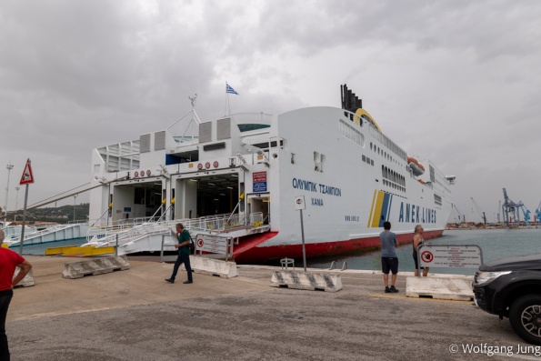 Nachts hat es in Ancona stark geregnet, am Mrgen geht es zur Fähre nach Patras. Wir machen Camping an Deck, waa gut funktioniert und haben eine ruhige Überfahrt. Von Patras fahren wir direkt nach Gifa. Hier haben wir einen sehr schönen Campingplatz mit tollem Restaurant. Am nächsten Tag besuchen wir Olympia. Maria ist eine hervorragende Führerein und hat fast alle Aspekte der historischen Stätte im Blick. Im anschließenden Besuch im "Temle of Olives" nahe Olympia, präsentiert sich ein Familienbetrieb mit modernster Technik zur Herstellung von Olivenöl. Die herausragende Qualität wird seit 2021 mit vielen internationalen Auszeichnungen prämiert. Nach Essen und Einkauf geht es zurück. Am nächsten Morgen fahren wir weiter Richtung Pylos.