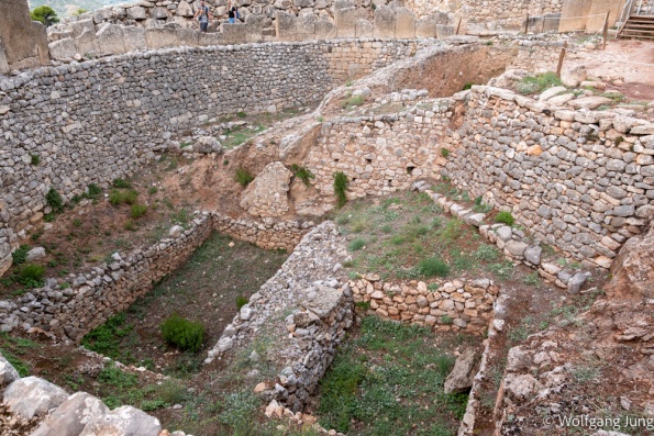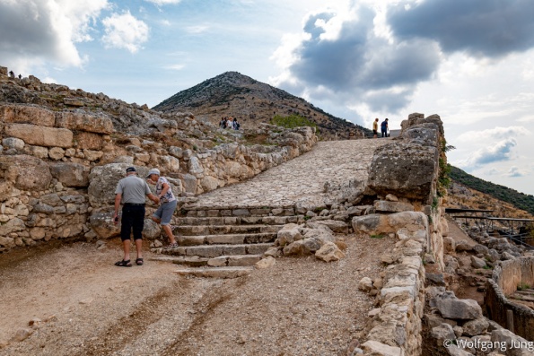 Jetzt kommen viele Steine....Mystras eine Bergfestung, gegründet im 4.ten Kreuzzug (1202-1204), die Spartaner, welche der Kreuzritter überdrüssig waren, machten daraus eine blühende Stadt mit 46.000 Einwohnern. Dann kamen die Osmanen, dann die Venezieaner, dann wieder die Osmanen.........Mykene, die Geschichte beginnt im Neolithikum, 3.500 v.Chr. und endet 1.200 v.Chr. Im Jahr 1.700 begannen die Ausgrabungen....Heinrich Schliemann war auch hier und grub ab 1876.......Nafplion war von 1686 - 1715 venezianischer Sttzpunkt, da wurde auch die Festung Palamadi gebaut, Besiedelt ist der Ort seit 1.370 v.Chr. Von 1829 - 1834 war es provisorische Hauptstadt Griechenlands und gilt heute als eine der schönsten Städte des Landes...