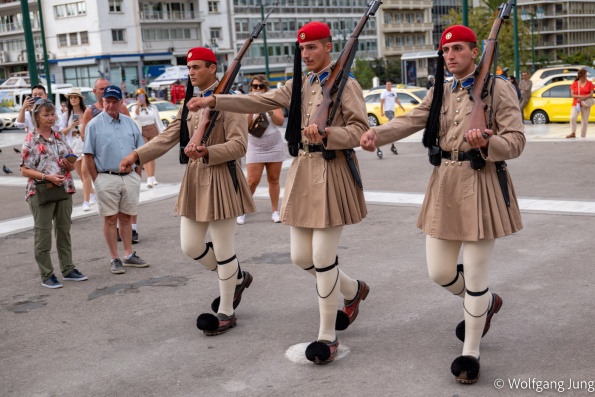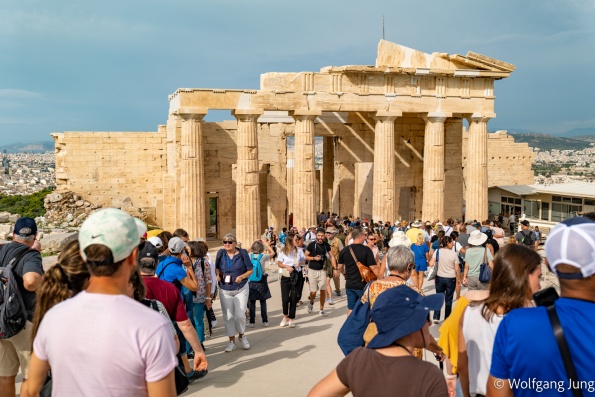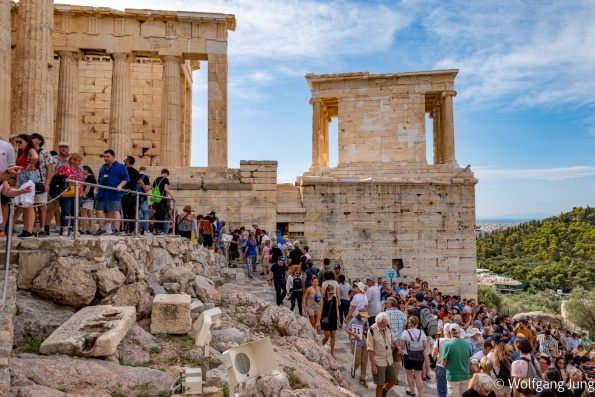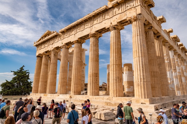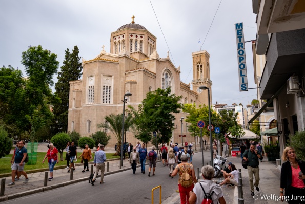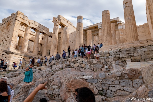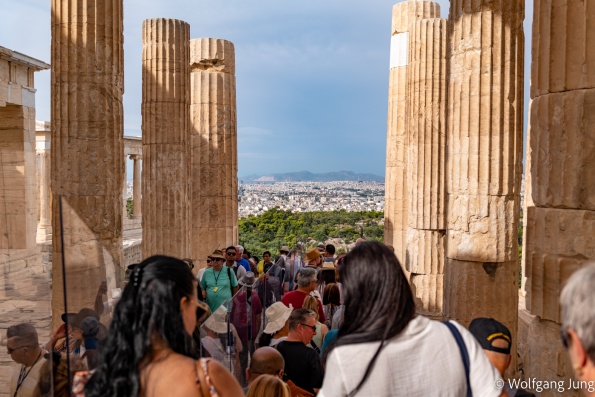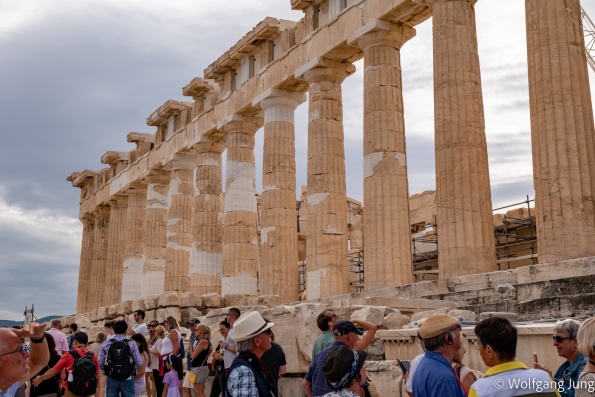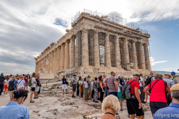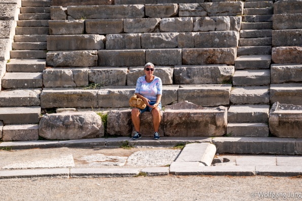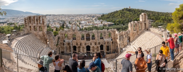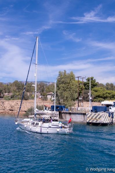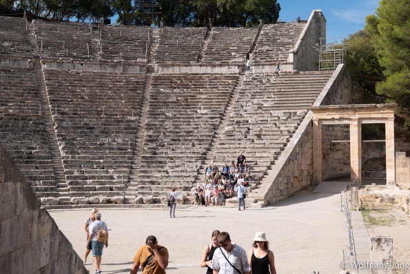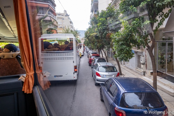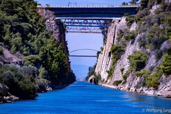 Epidauros, der antike Wellness Ort, ist unser Ziel am nächsten Morgen. Nach den Aufzeichnungen wurde hier ganzheitlich gehilt / entspannt. Vom Bad, Massage bis zum berühmten Theater diente Alles der Erbauung und Entspannung. Das berühmte Theater ist vollständig erhalten, da in den Hang gebaut. Die sonstigen Gebäude sind zerfallen. Weiter nach Korinth wo seit 1893 der Kanal den Pelepones vom Festland trennt. Die 6343 m lange Verbindung des Saronischen Golfes mit dem Golf von Korinth erspart die Umfahrung des Pelepones. Der Kanal hat sehr steile bis zu 84m hohe Flanken. Das Kanalbett ist 24,6 m an der Oberfläche.In 8m Wassertiefe sind es noch 21 m. Er wird heute überwiegend von Freizeitbooten durchfahren. In Athen stehen wir am Stadtrand. Mit dem Bus geht es in die Stadt zu der Akropolis, der Plaka (Altstadt) und dem Olympiastadion.
