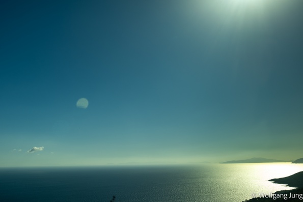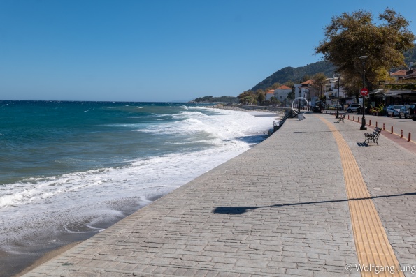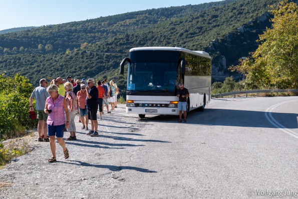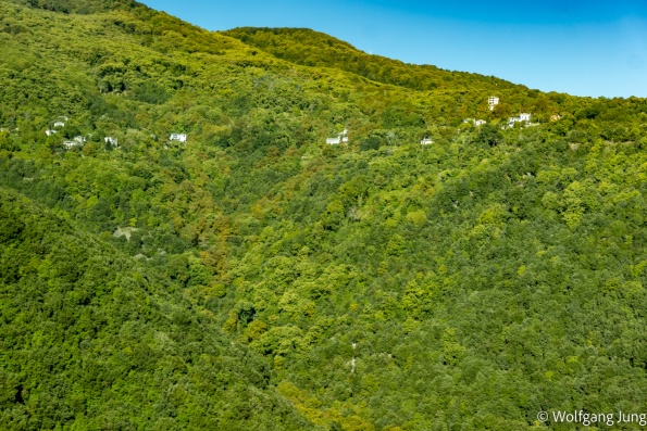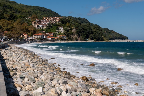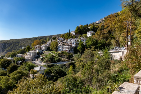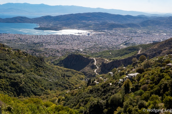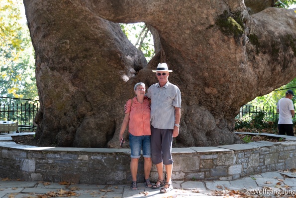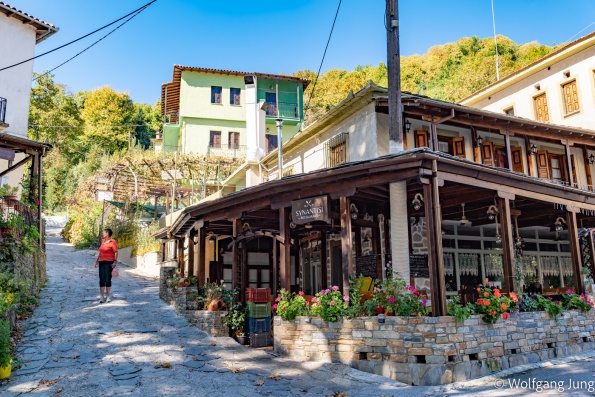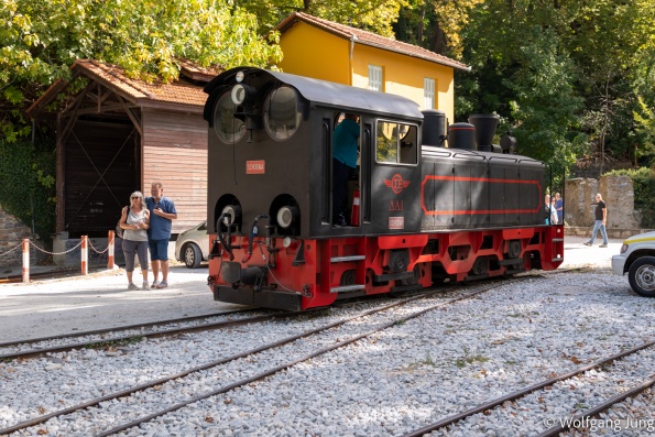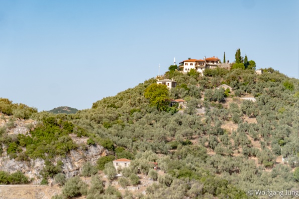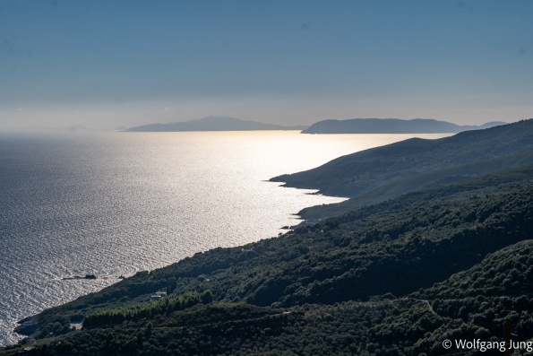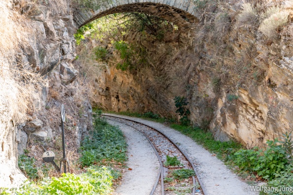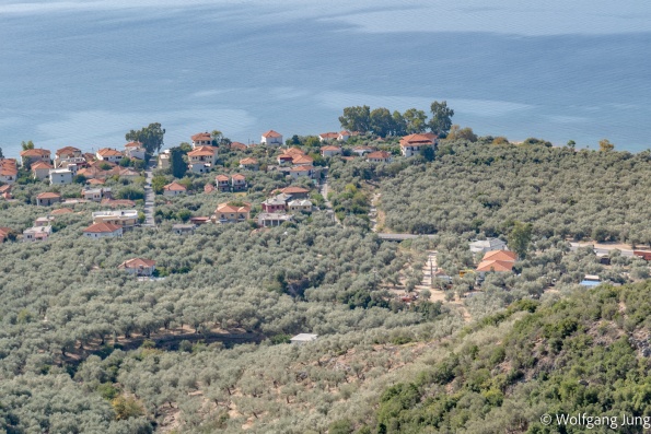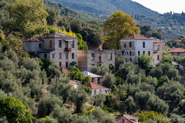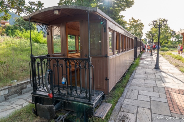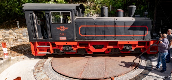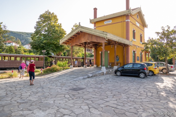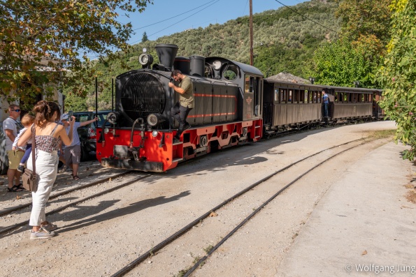 Der Gebirgszug Pilion, der bis zu 1.500 m.ü.NN aufragt, führte zur Entstehung dder hakenförmigen Halbinsel zwischen Ägäis und Pargastischen Golf vor dem Hafen von Volos. Pilion gilt als eine der schönsten Landschaften Griechenlands. War schon bei den Göttern des Olymp beliebt, die hier ihre Smmerresidenz hatten, den Kentauren und ist heute ein beliebtes Reiseziel der Griechen. Bekannt ist Pilion für die schmucken, direkt in den Fels gebauten Bergdörfer die Olivenhaine und idyllische Strände. Die Pilion Schmalspurbahn fährt von Ana Lechonia nach Milies. Mit 60 cm Spurweite ist sie eine der schmälsten der Welt. Die Lok zieht 4 Wagen mit 20 km/h durchs Gebirge.
