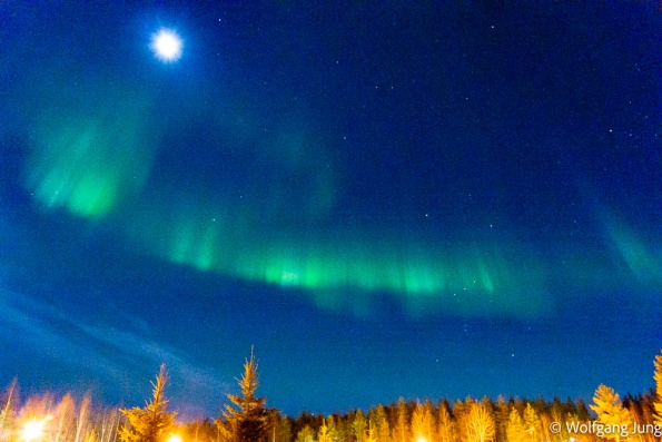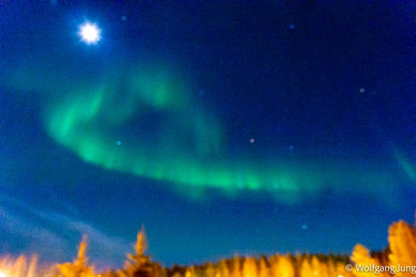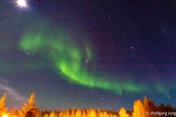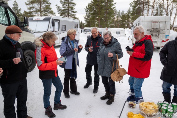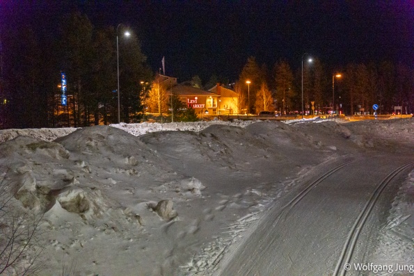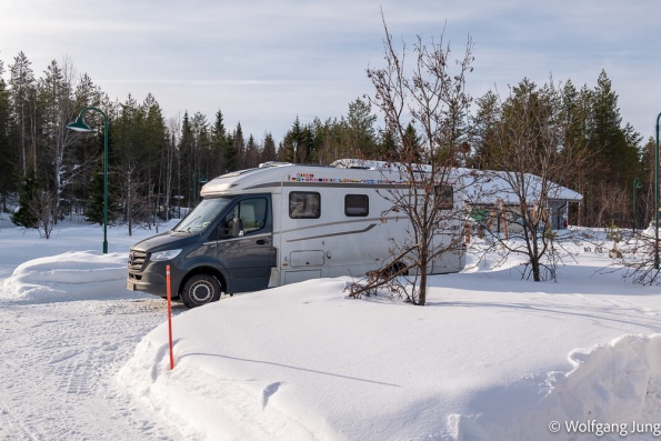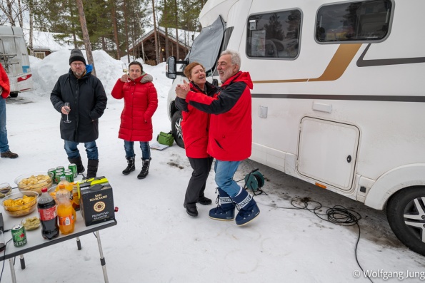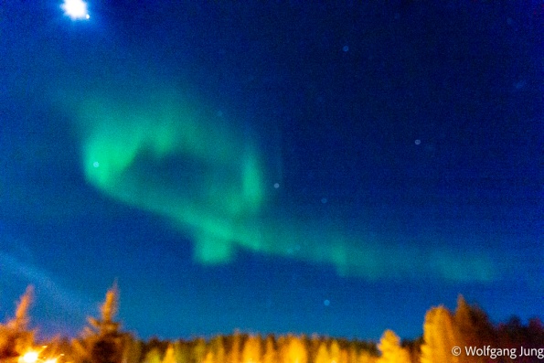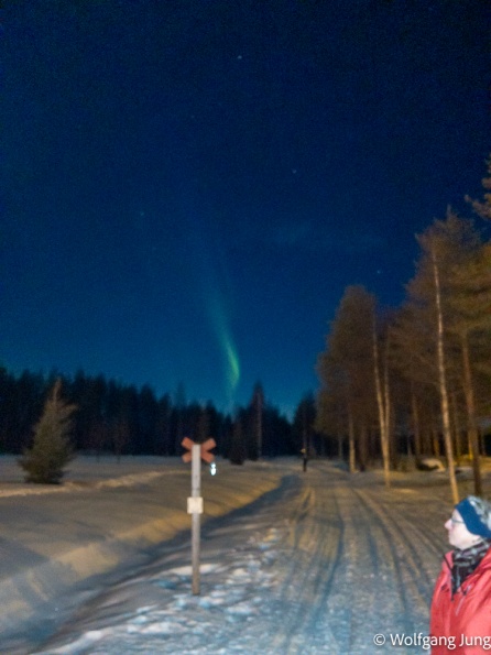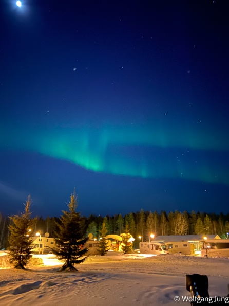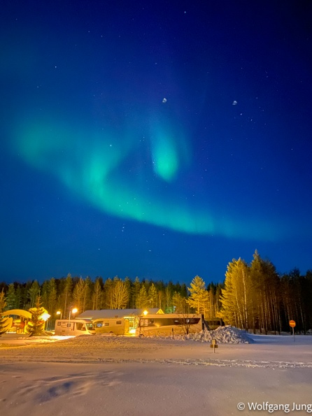 In Hetta hatten wir am Morgen der Abreise eine Überaschung +1C. das führte zu erheblichen Problemen den Platz zu verlassen, aber Alles gut gegangen. Nun haben wir jeden Tag so + 3-5 C und sind, insbesondere beim Einparken entsprechend vorsichtig. Trotzdem ist hier noch prchtig Schnee und Winter.......und letzte Nacht passte es endlich....klarer Himmel und Aurora Borealis, das Polarlicht.....anbei meine ersten Fotos von diesem Naturphänomen...