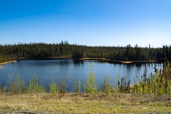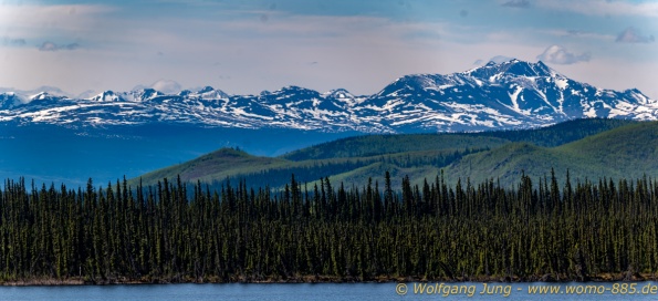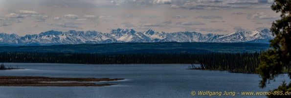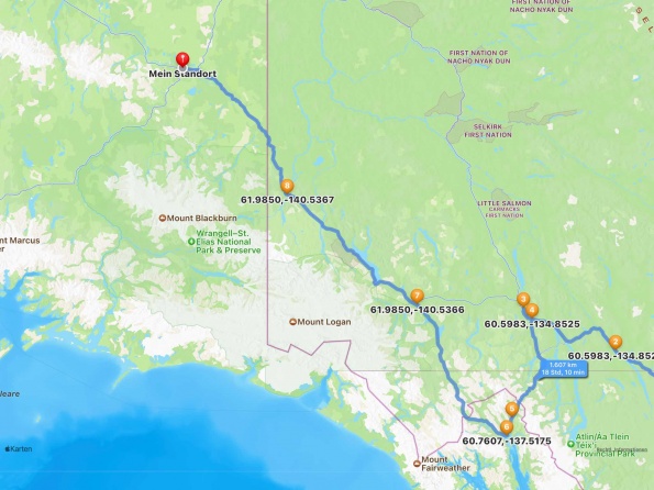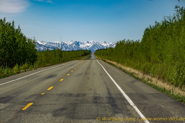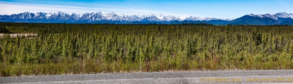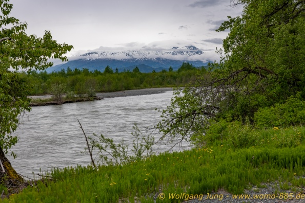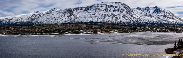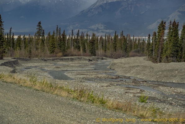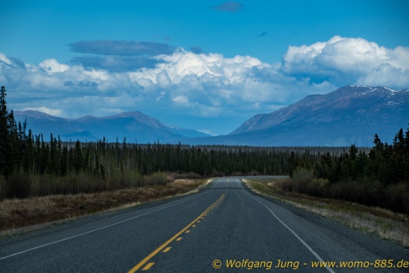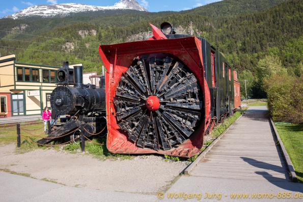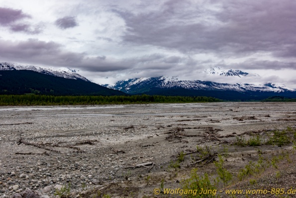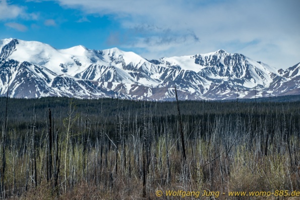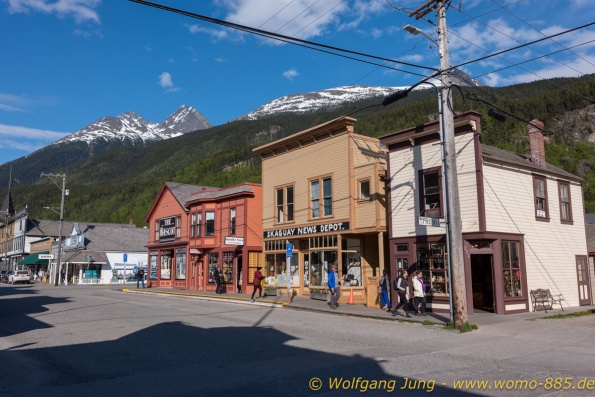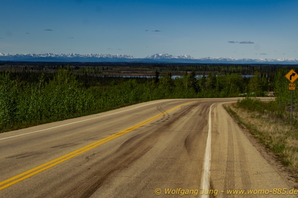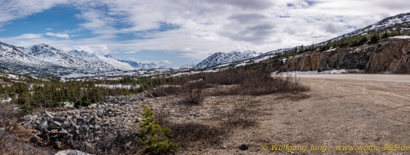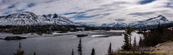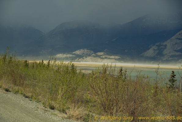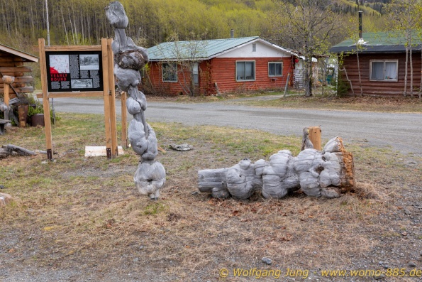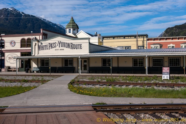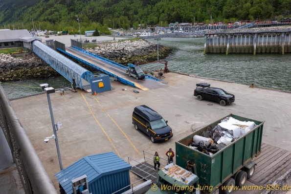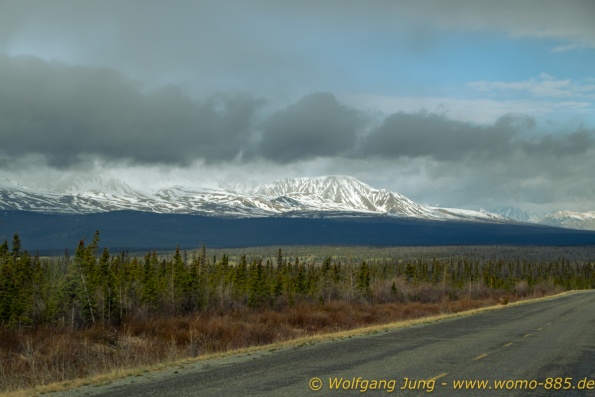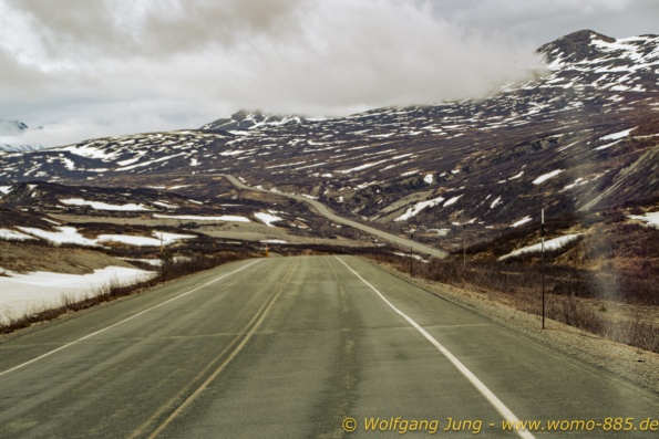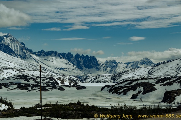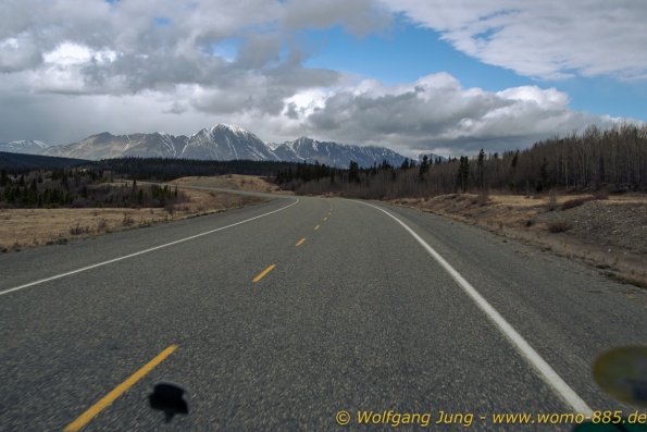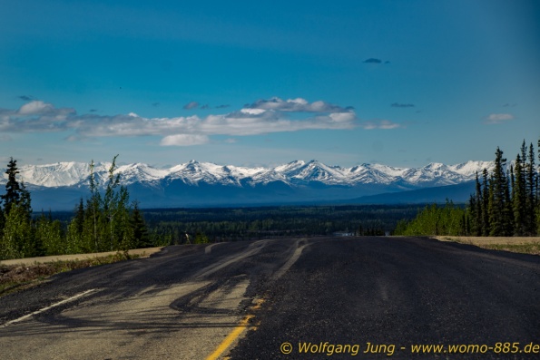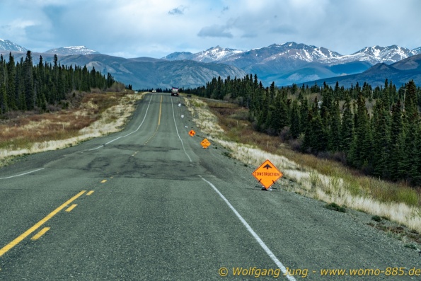 Von Whitehorse nach Skagway, AK über den Whitepass eine sehr schöne Strecke. Die ist Anziehungspunkt für die vielen Kreuzfahrer. Im Goldrausch von Dawson kamen hier 1897 tausende von Glückssuchern an und Alle waren zu spät, der Kuchen längst verteilt. Wir fahren mit der Fähre 20 km nach Haines. Von hier folgen wir nun 3 Tage erst dem Haines Hwy, dann dem Alaska Hwy. Diese führen entlang des Verbundes der National Parks - Glacier Bay - Kluane - Wrangel St. Elias - nach Nordwesten. Über 700 km entlang schneebedeckter Gipfel .......