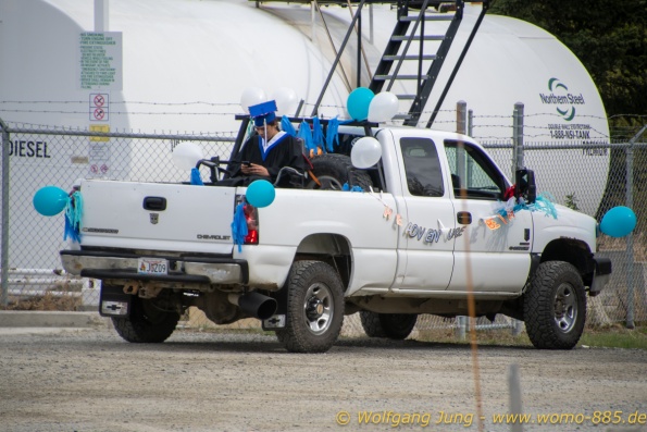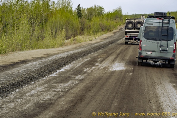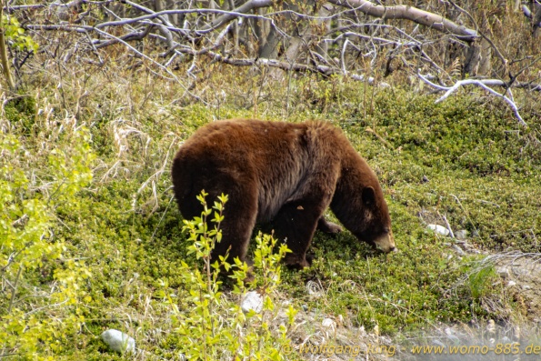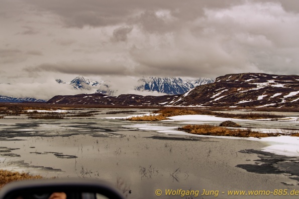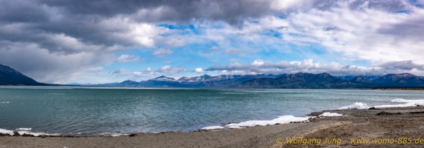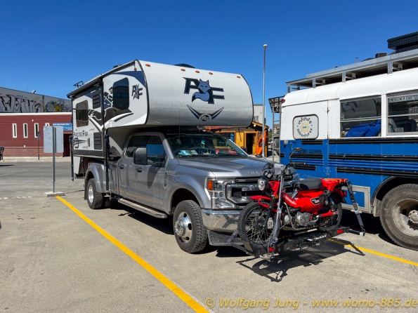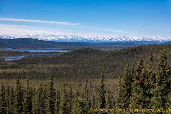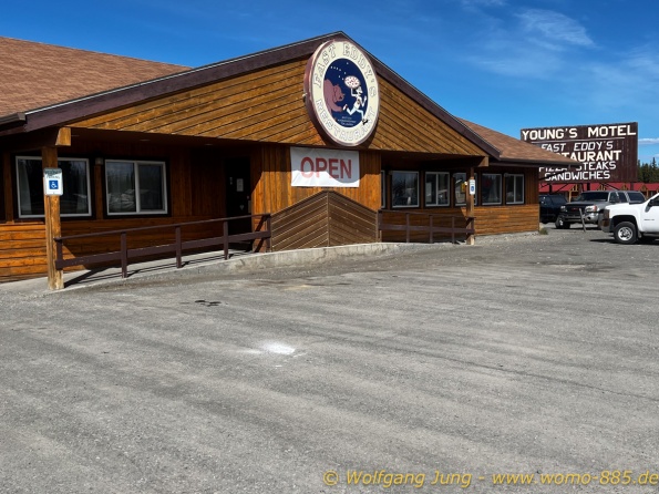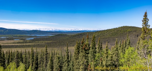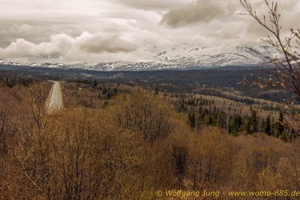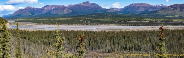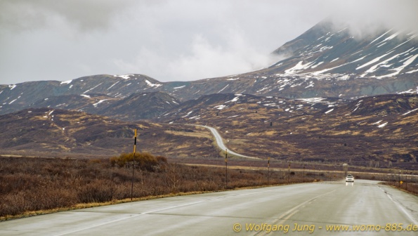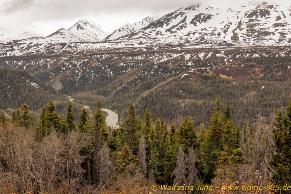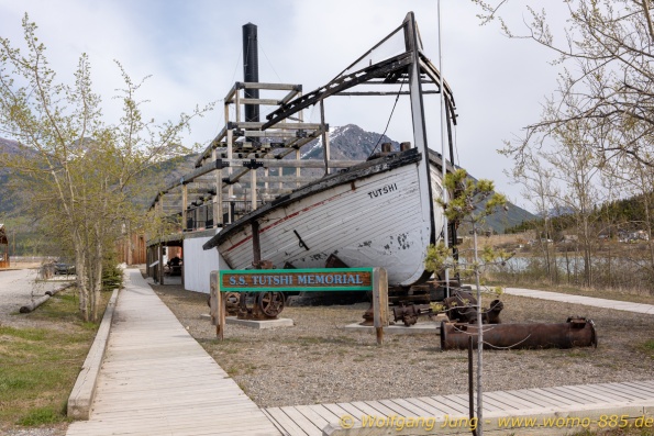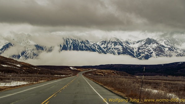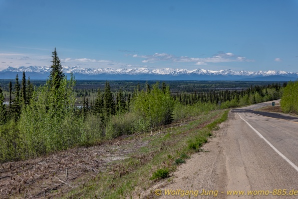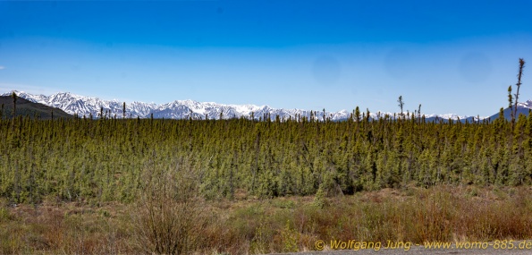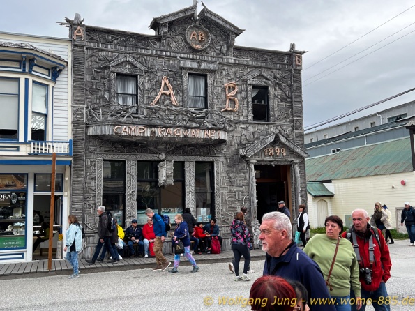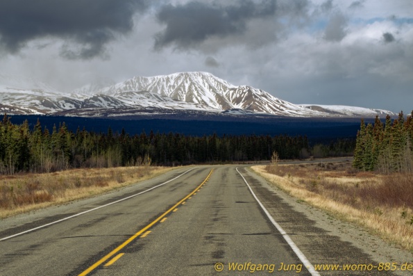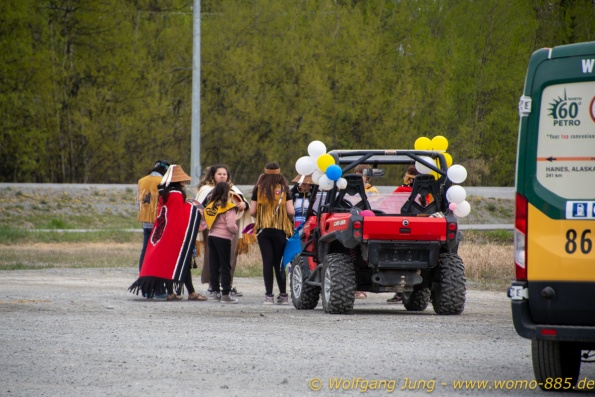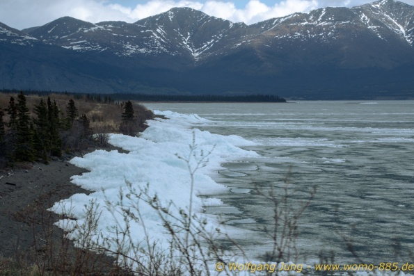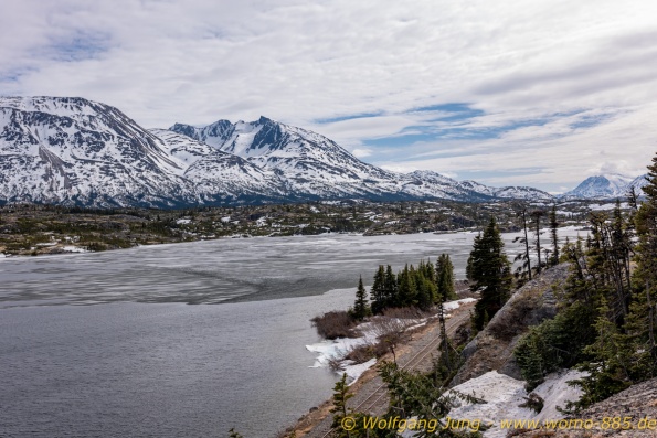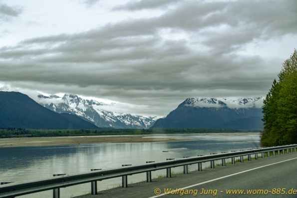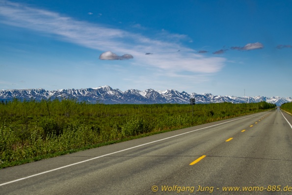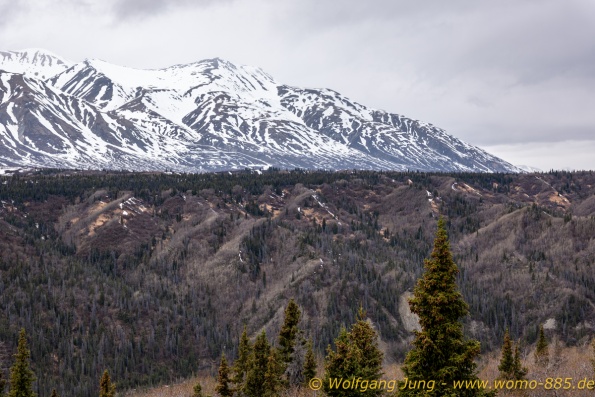 Von Whitehorse nach Skagway, AK über den Whitepass eine sehr schöne Strecke. Die ist Anziehungspunkt für die vielen Kreuzfahrer. Im Goldrausch von Dawson kamen hier 1897 tausende von Glückssuchern an und Alle waren zu spät, der Kuchen längst verteilt. Wir fahren mit der Fähre 20 km nach Haines. Von hier folgen wir nun 3 Tage erst dem Haines Hwy, dann dem Alaska Hwy. Diese führen entlang des Verbundes der National Parks - Glacier Bay - Kluane - Wrangel St. Elias - nach Nordwesten. Über 700 km entlang schneebedeckter Gipfel .......