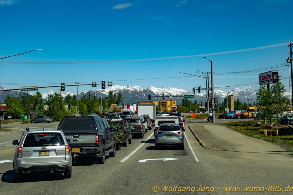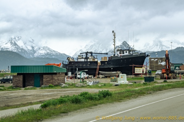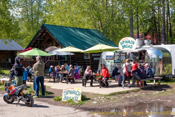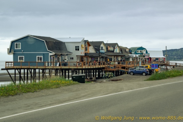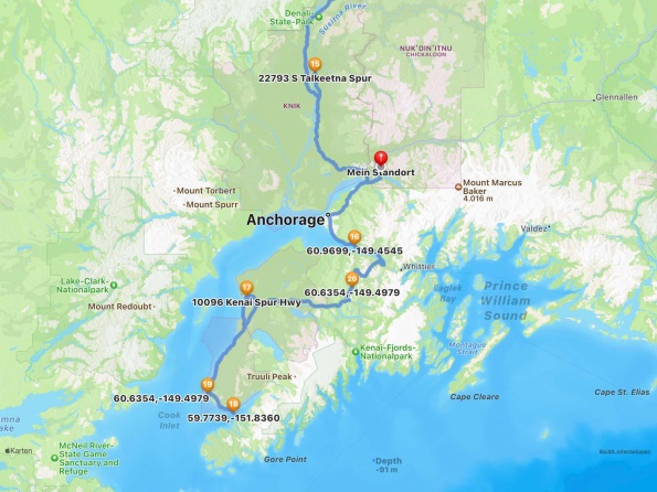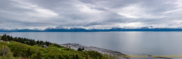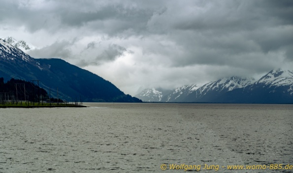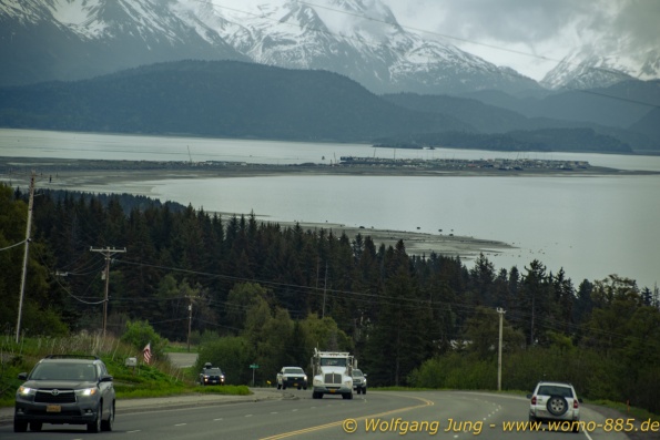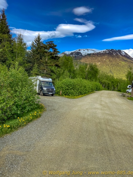 Das Positive zuerst, im Süden Alaskas gibt es derzeit keine Stechmücken. Bei 7-12 C, Regenschauern und einer Sicht die meist unter 3 km liegt ist das die beste Nachricht. Wir waren bis Homer Split gefahren um zu schauen was möglich ist. Ergebnis: nix! Keine Flüge zu Bären, Ruhe auf dem Flugplatz und bei den Wasserflugzeugen. Die Aussichten für die nächsten Tage - kaum Veränderung. Wir haben daher entschieden zurück Richtung Tok zu fahren. Der Abend am Halibut Campground, Anchor Point - der östlichste mit einem Fahrzeug zu erreichende Punkt Nordamerikas......brachte noch sehr schöne Überraschungen.
