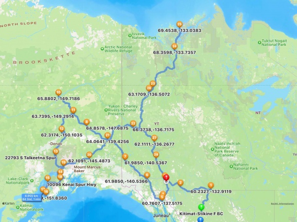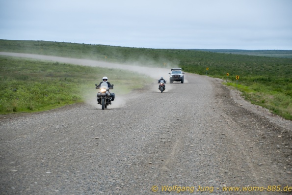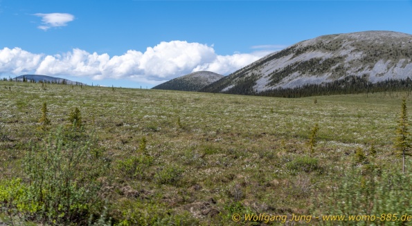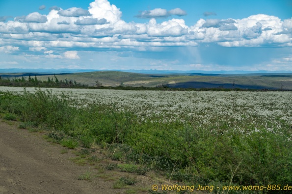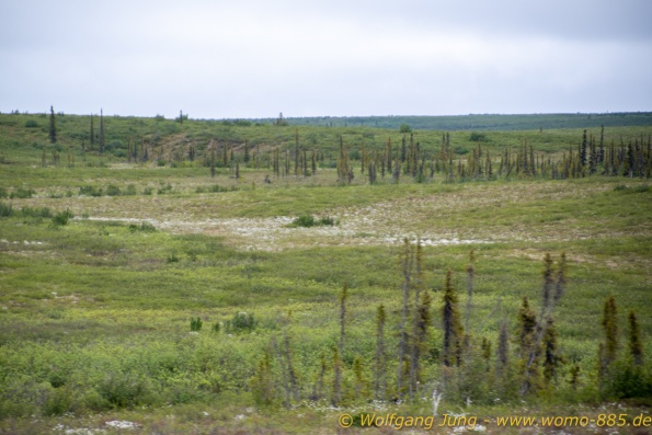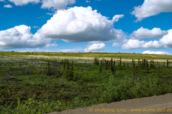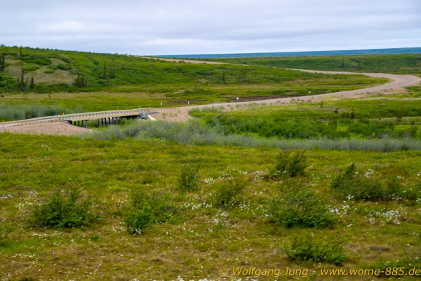 Der Dempster Hwy wurde 1979 fertiggestellt und führt über 736 km nach Inuvik. Die Strasse von Inuvik bs Tuktoyaktuk wurde 2017 fertig und ist 148 km lang. Wir fahren bis zum Arktischen Ozean, also 884 km "Gravelroad" hin und zurück ist Weg genauso lang. 7 Tage wird es dauern.....und toll. Die Strasse führt durch 5 Klimazonen mit unterschiedlichen Pflanzen und Landschaften. Tiere sind erst ab Mitte August hier zu sehen, wenn die Früchts reif und die Wasserpflanzen ausgewachsen sind.
