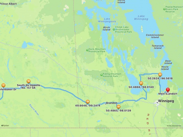 Unsere Reise führt von Saskatchewan nach Manitob, In längere Aufenthalten geniesen wir die Sommertage. Die Vorbereitung für den Abschluss im Osten Kanadas beginnen. An den Seen Manitobas ist der Tourismus gemütlich, meist Ferienwohnungen oder Dauercamper aus Winnipeg.