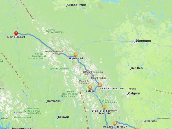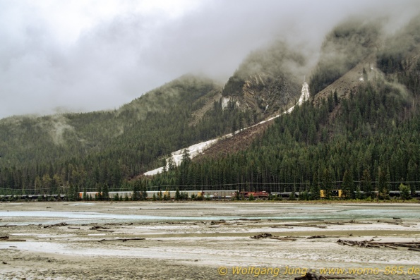 Nach den Freuden des Thermalwassers, kam das Wasser in den nächsten Tagen meist von oben. Das bringt spannende Bilder. Entlang des Columbia River nach Golden. Von hier nach Lake Louise und dann die Promenade des Glaciers. Klingt einfach besser als Icefield Parkway. Von Jasper über den Yellowhead HWY zu Mount Robson und dann nach Prince Georg. Mit 75.000 EW, die letzte große Stadt im Norden Kanadas.