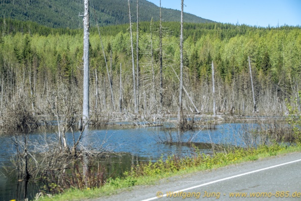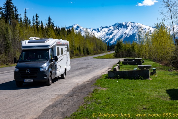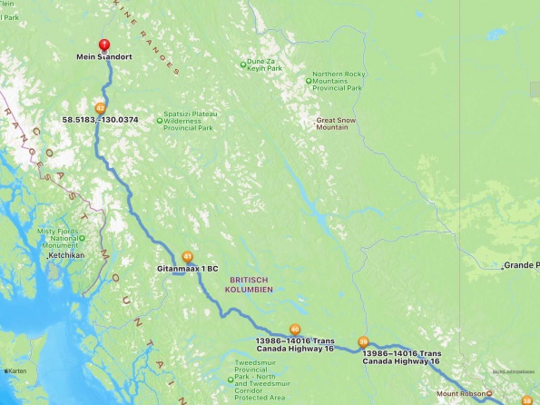 Wir verlassen Prince Georg auf der 16 West. Es wird immer einsamer und schöner. Auf den Campingplätzen geht meist nur WIFI, die Saison beginnt hier Mitte Juni. Unser Wohnmobil hat damit kein Problem, wir haben Wasser, Propan und Diesel in Prince Georg gefüllt. Nur regelmässiges Diesel tanken ist notwendig, bei Abständen von bis 230 km zwischen den Tankstellen...rechtzeitig nachtanken, egal was es kostet....Wir sind diese Strecke erstmals 1994 gefahren, aber immer von Nord nach Süd ...nun erstmals umgekehrt..