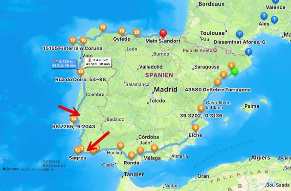 Wir sind in Lagos im Süden Portugals. Eine Bootsfahrt zeigt die SChönheiten der Algavre. Über Kap und Festung Sagres fahren wir nach Lissabon. Unterwegs gibt es sehr viele Störche. Lissabon ist eine sehr schöne Stadt, deren Einwohner unter den Touristen zunehmend leiden, insbesondere Vedrängung aus der Altstadt und sehr hohe Mieten belasten.