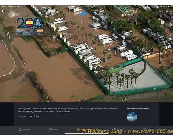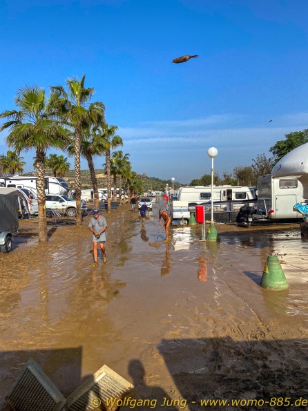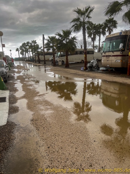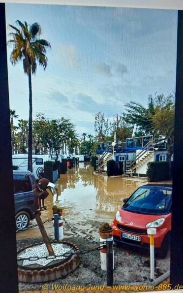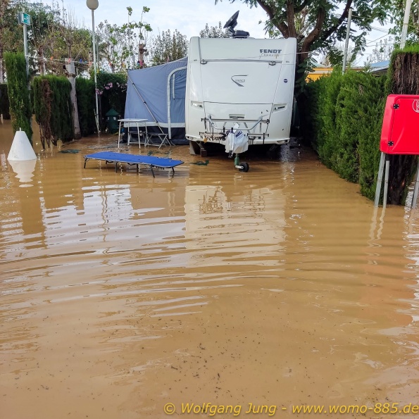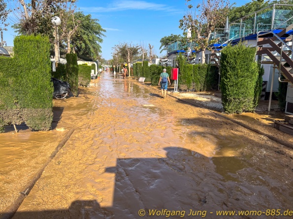 Von den Unwettern Ende Oktober um Valencia bekamen wir nur etwas Regen. Aber am 14.11.2024 waren wir dran, am Nachmittag wurde der Campingplatz evakuiert, da er mit Schlamm und Wasser geflutet wurde. Wir standen 2 Nächte in Torre del Mar am Strassenrand, Schon am nächsten Tag war es sonnig und warm. Wir hatten keine Verletzungen oder ähnliches. Zurück am Campingplatz, auf den Parkplatz, zum Stellplatz konnten wir ncht. Dann haben wir noch einiges geborgen und beschlossen nach Hause zu fahren, da in einer Woche unser Aufenthalt hier sowieso geendet hätte.